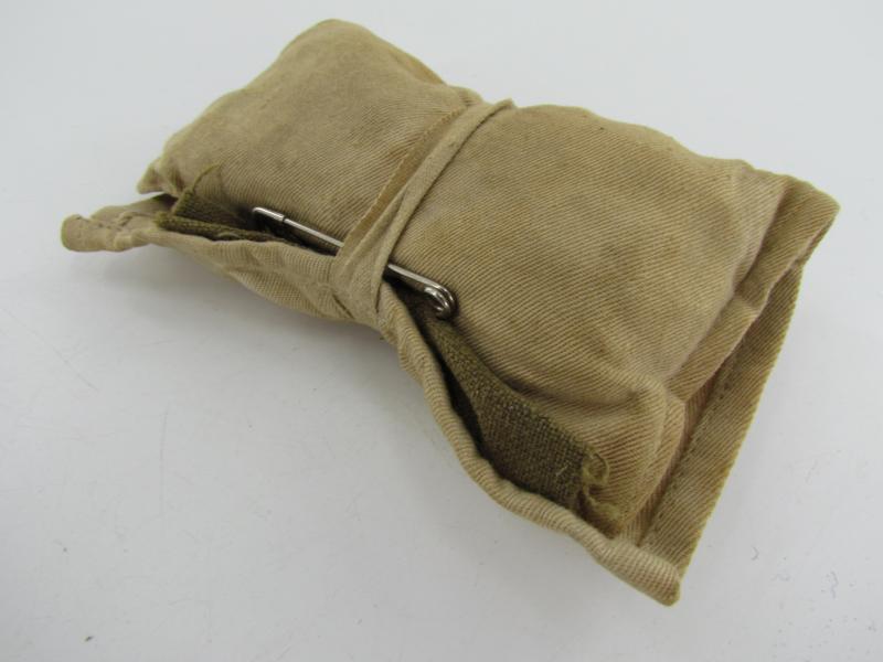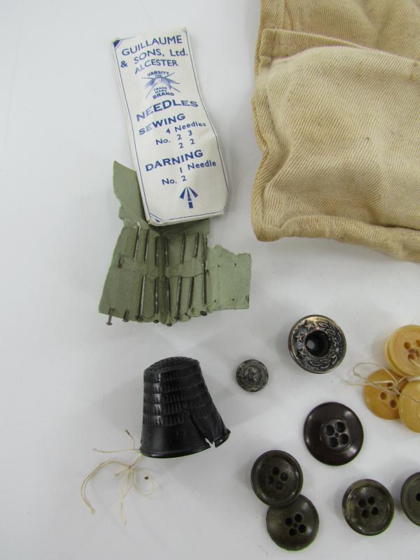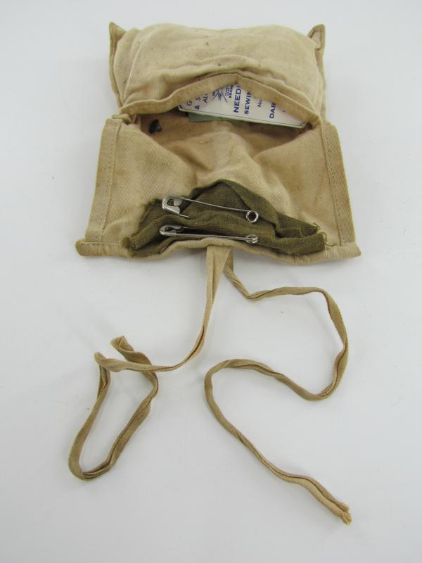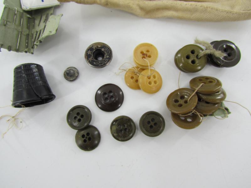 In a nice used condition a British WWII Dyed Jungle Green Houswife Sewing Kit. The kit is complete with some buttons and wool.