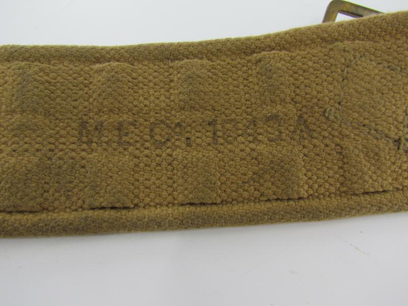 British WW2 Webbing Combat Belt a very nice British WW2 webbing combat belt. Marker marked and dated “1943” . In used but very good condition.