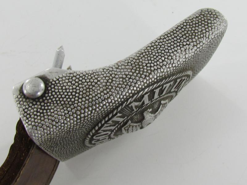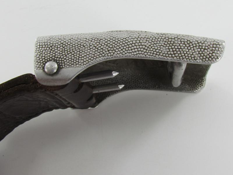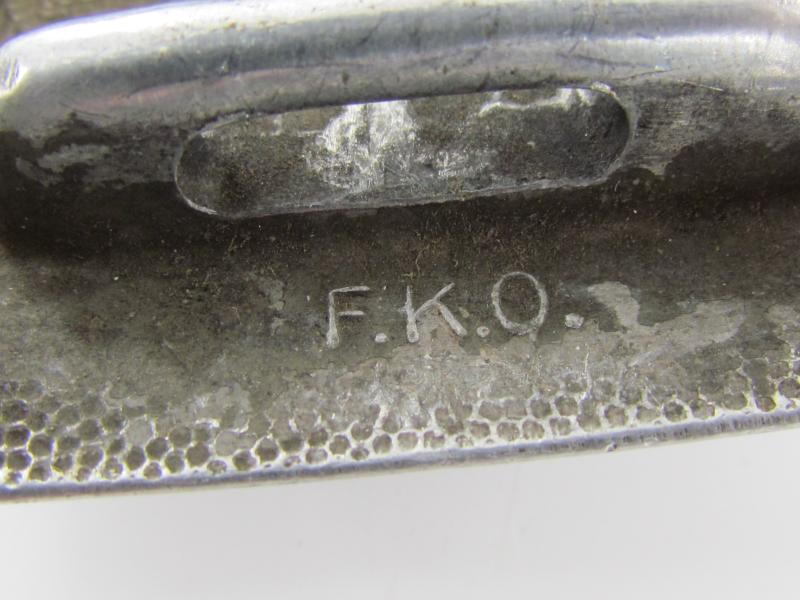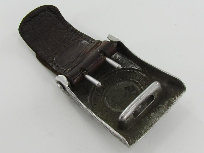 belt buckle complete with leather tongue. The reverse of the buckle is maker marked by F.K.O and matches with the marking on the leather tab Friedrich Keller, Oberstein 1937. F.K.O.