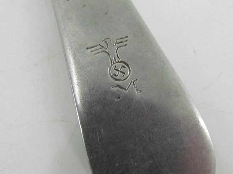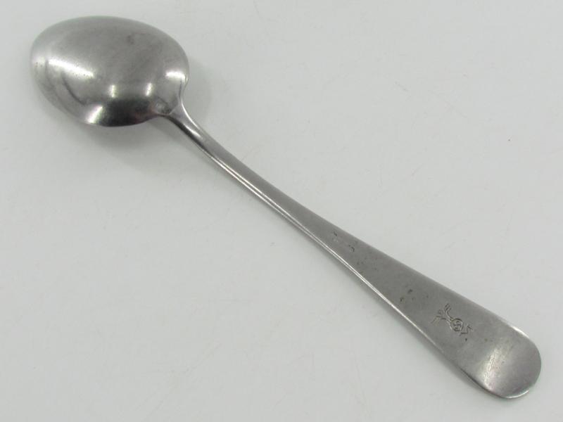 Kriegsmarine Messhall Spoon maker and also marked with a Kriegsmarine acceptance marking showing an eagle above a capital 'M'. Nice original personal kit item in good used condition!