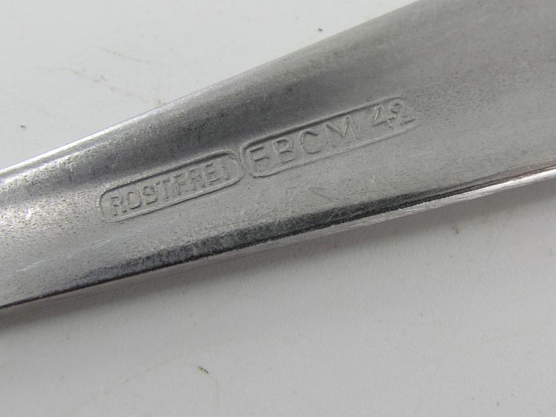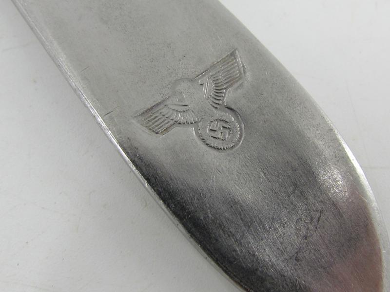 Original WWII German HEER (Army) Stainless Steel Mess Hall Spoon Maker marked 'FBCM' and dated '42' in a very good condition