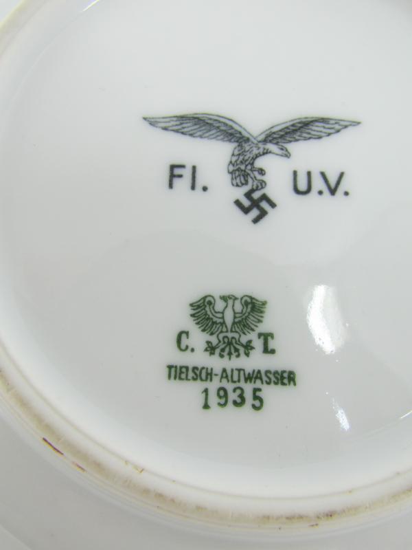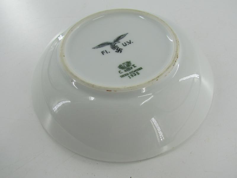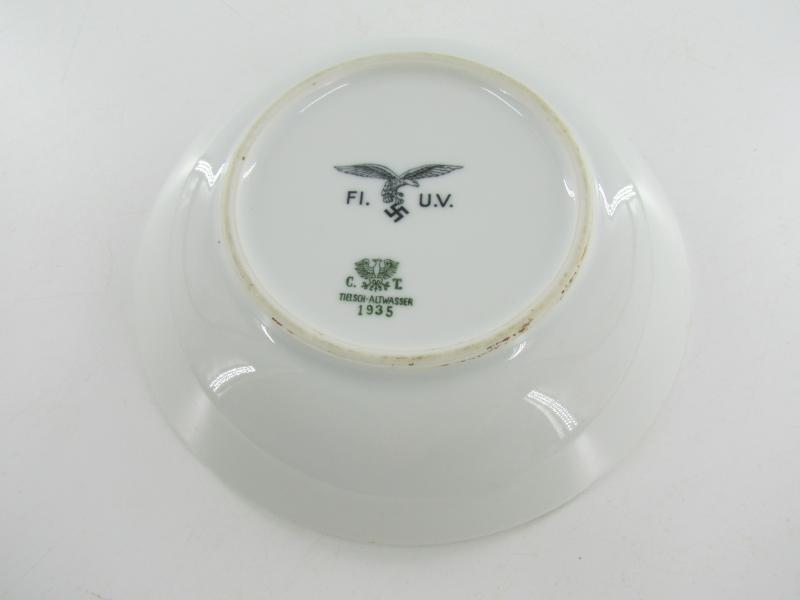 Very nice Luftwaffe marked porcelain coffee/tea cup saucer. The overall condition of the saucer is excellent. No damages. Nicely marked with the Luftwaffe eagle, dated '1935'