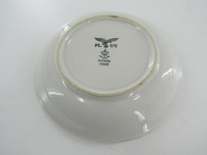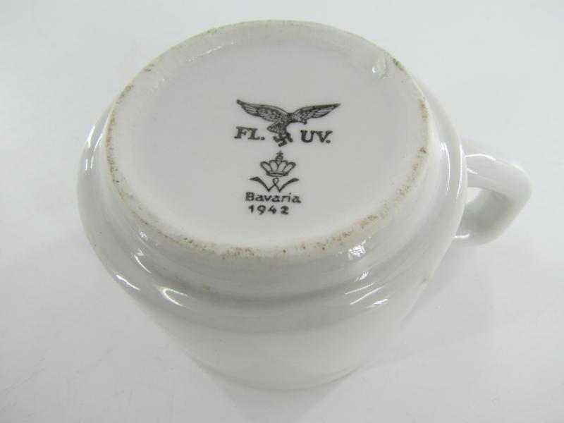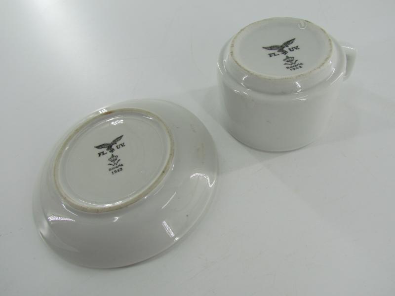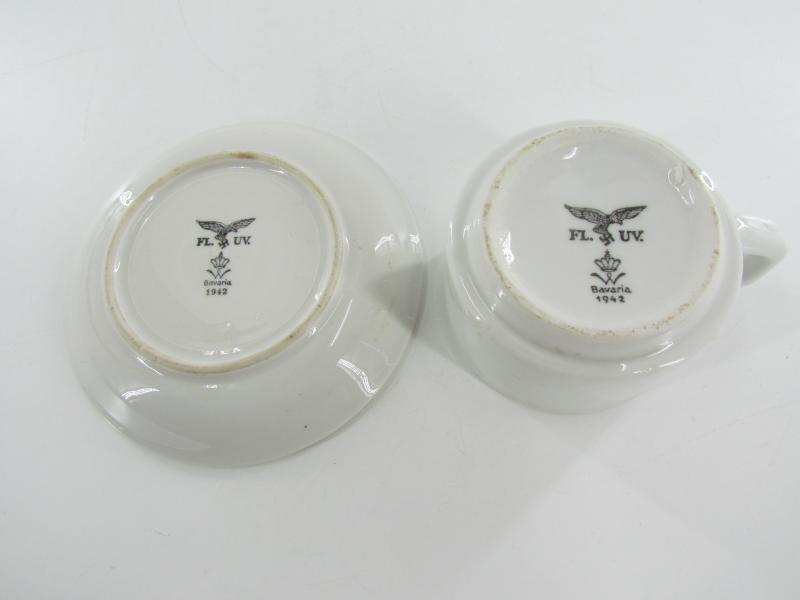 Very nice Luftwaffe marked porcelain coffee/tea cup & saucer. The overall condition of the saucer is excellent. No damages. Both are nicely marked with the Luftwaffe eagle, dated '1942'