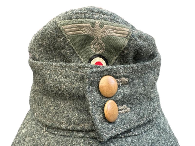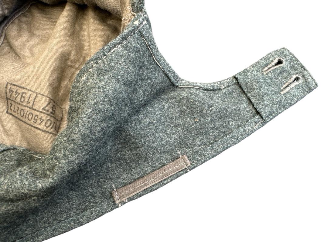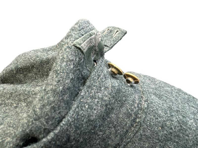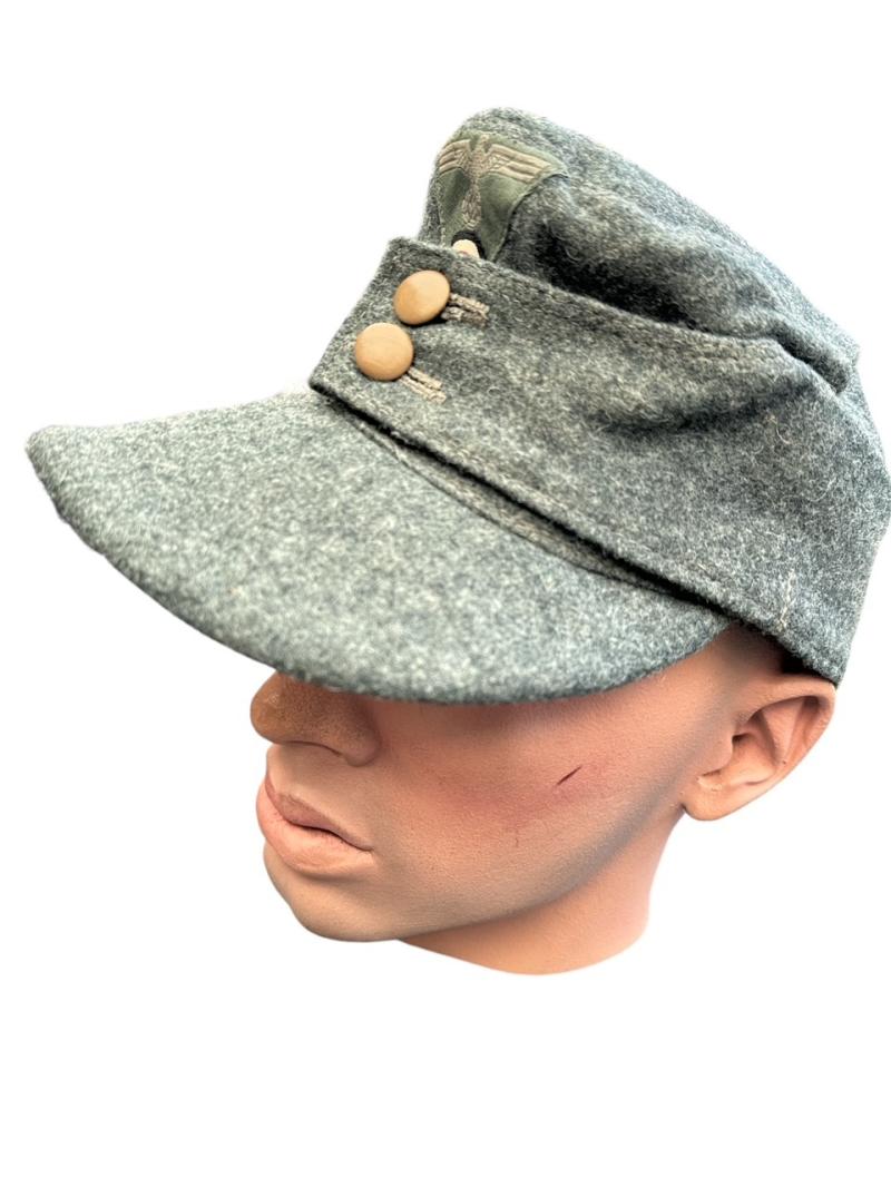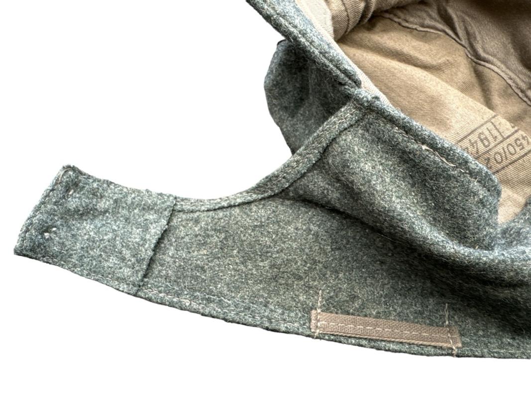 unissued Heer M43 field cap executed in captured Italian wool. The cap is a textbook example of a mint M43 field cap or Einheitsfeldmütze.