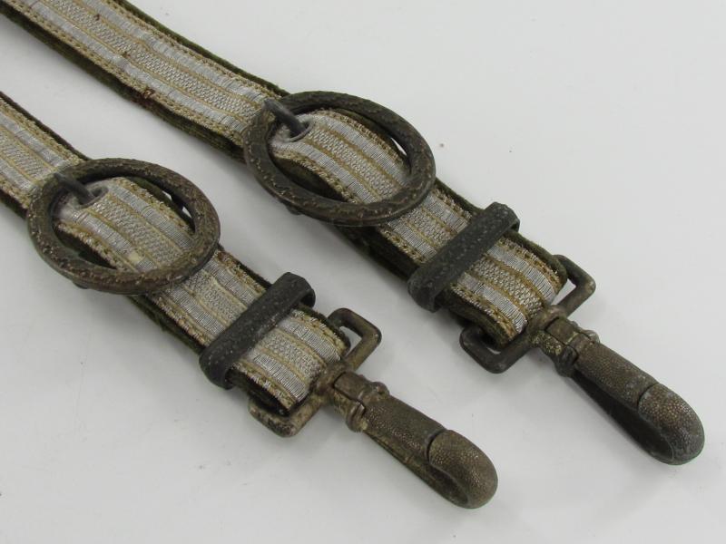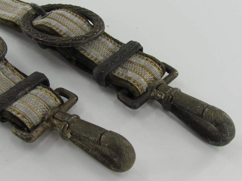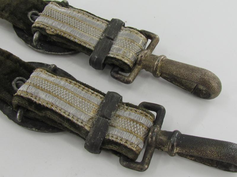 Wehrmacht dagger Gehänge in worn condition, with reinforcement of the carrying part made of leather. Great to complete a nice Wehrmacht dagger. In a used but good condition.