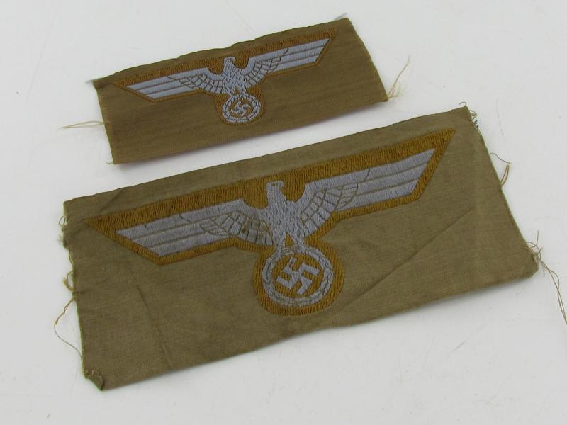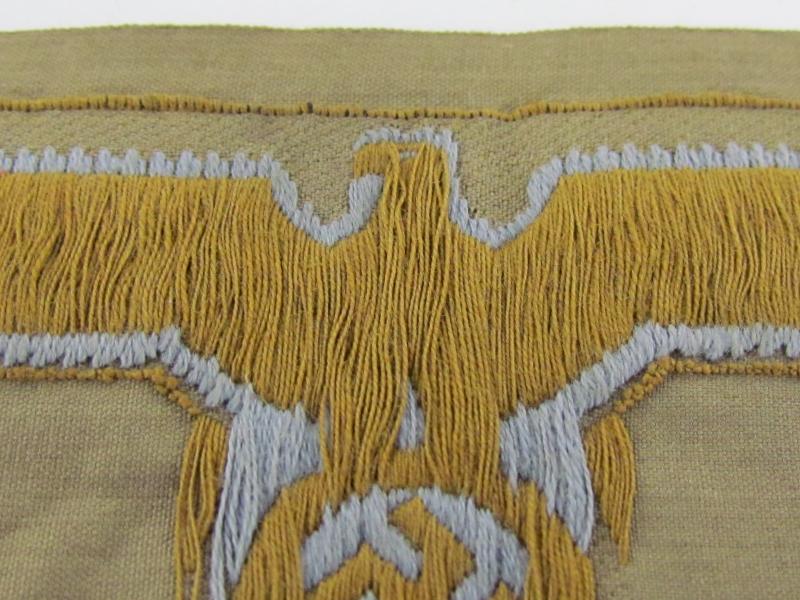 tropical ‘DAK’ army breast & cap eagle. Flat woven ‘BeVo-weave’ examples on tan colored backing. Unissued and mint examples Very hard to find!!!