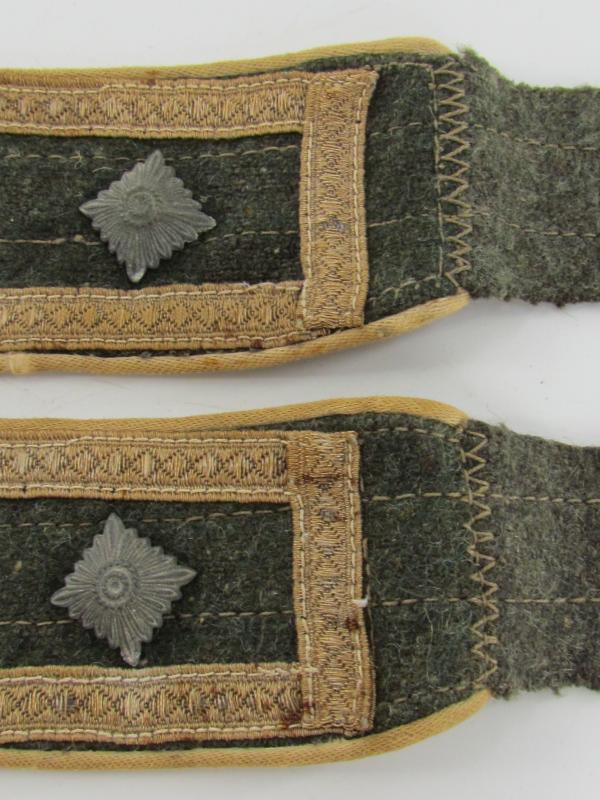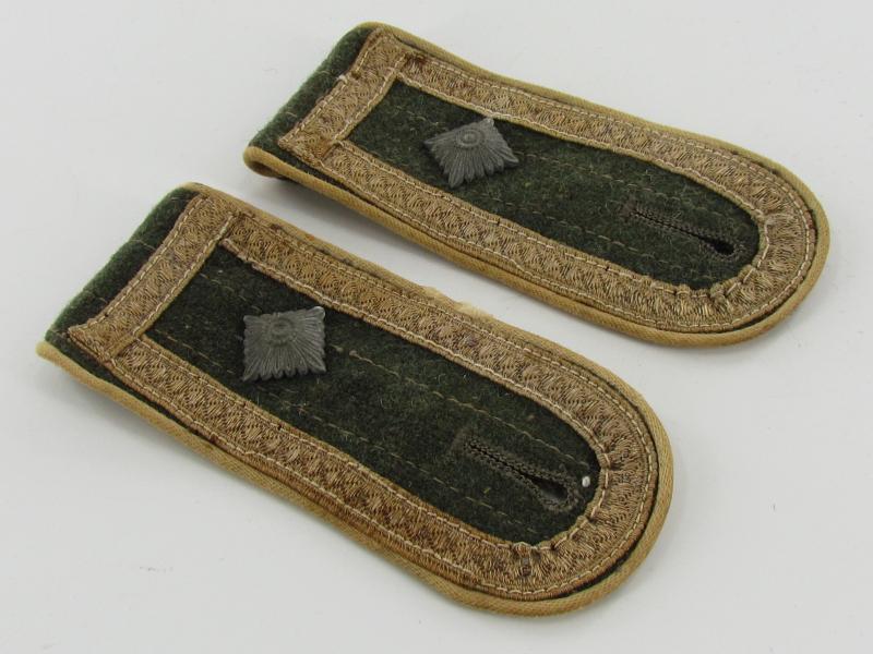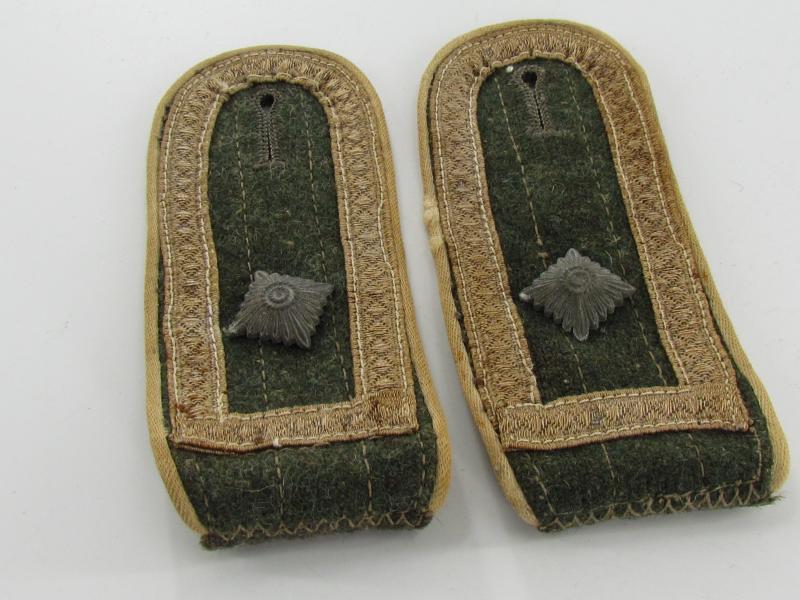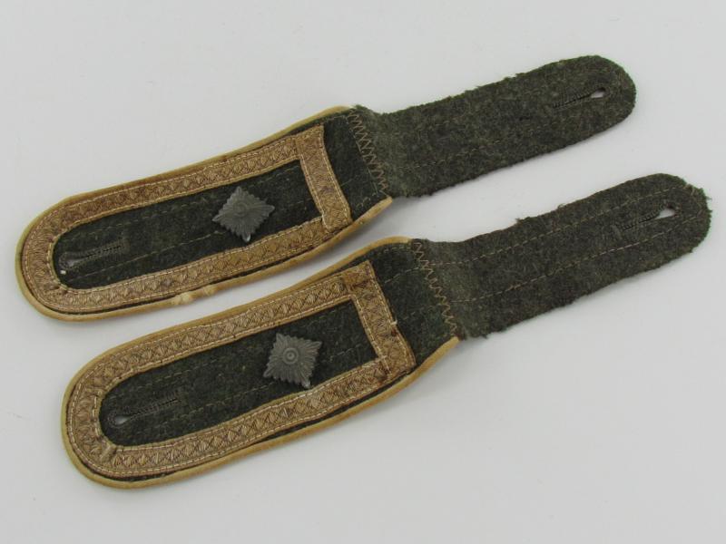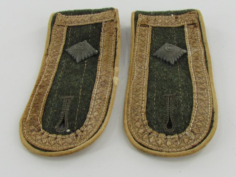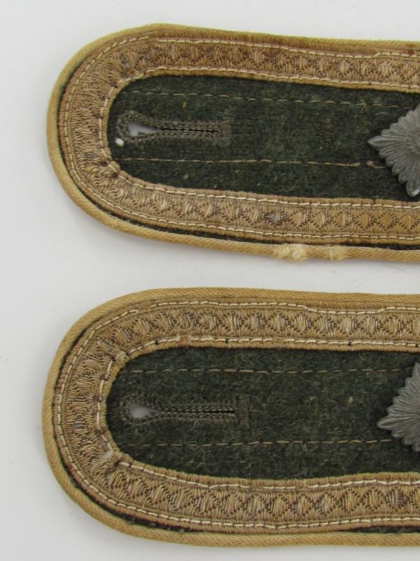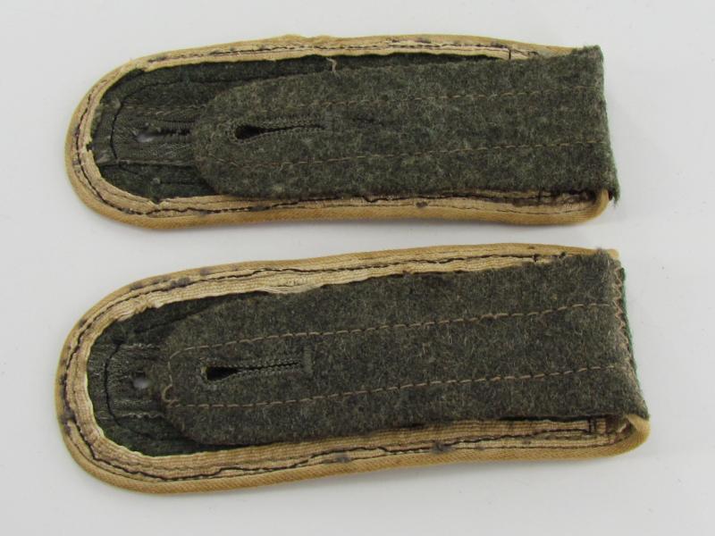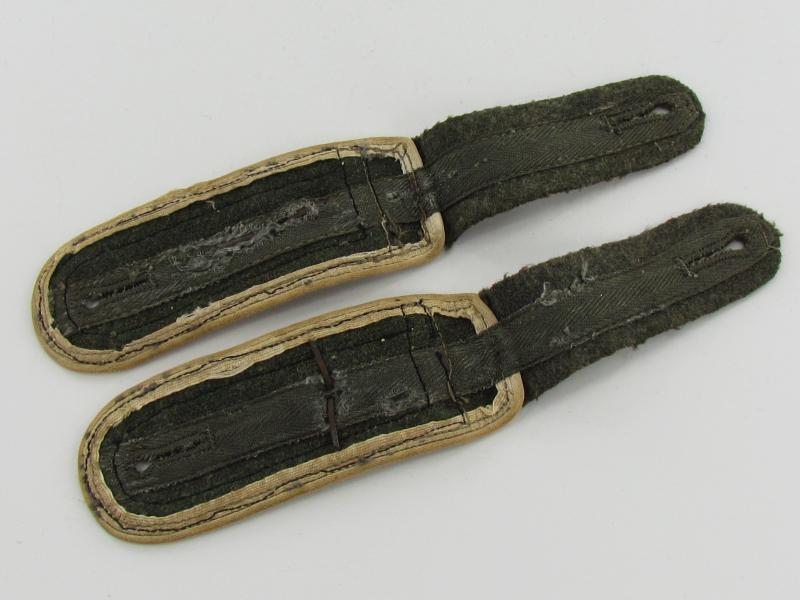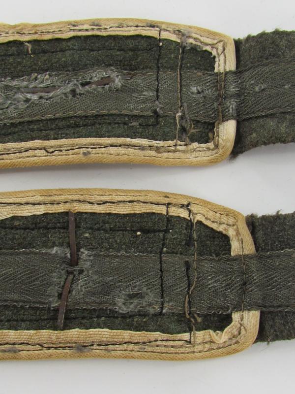light worn pair of army shoulder boards for a Feldwebel of the German infantry. Nice white piping for infantry in rayon. Silver NCO tresse in used but good condition