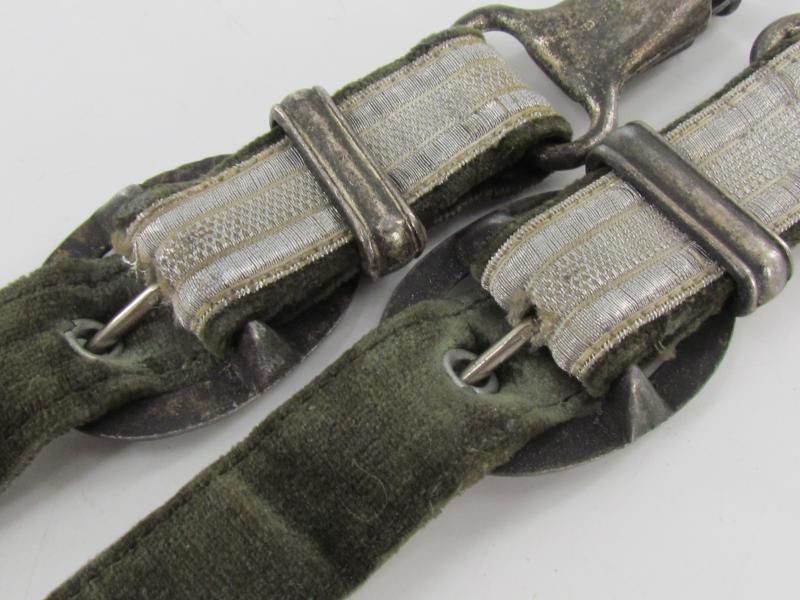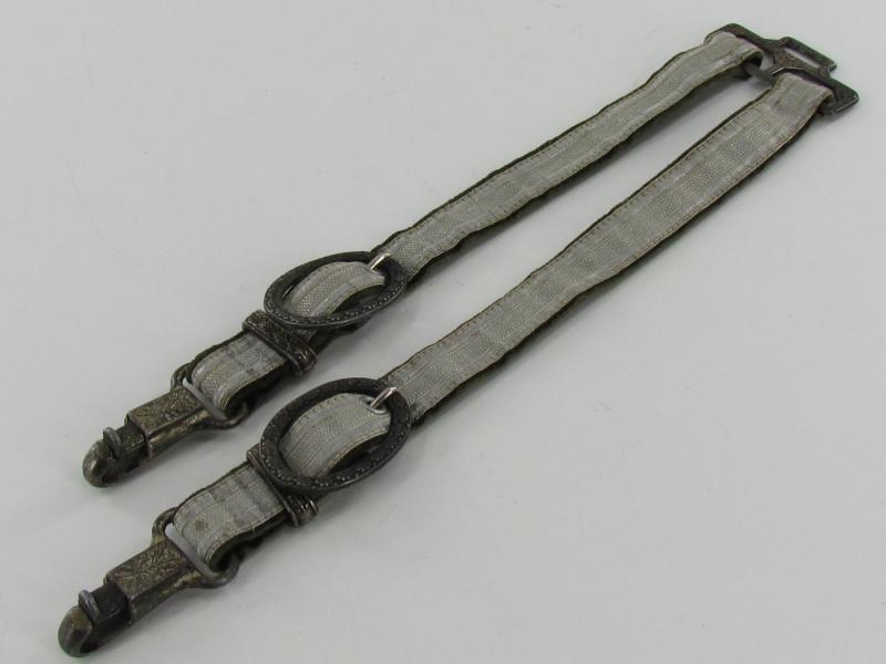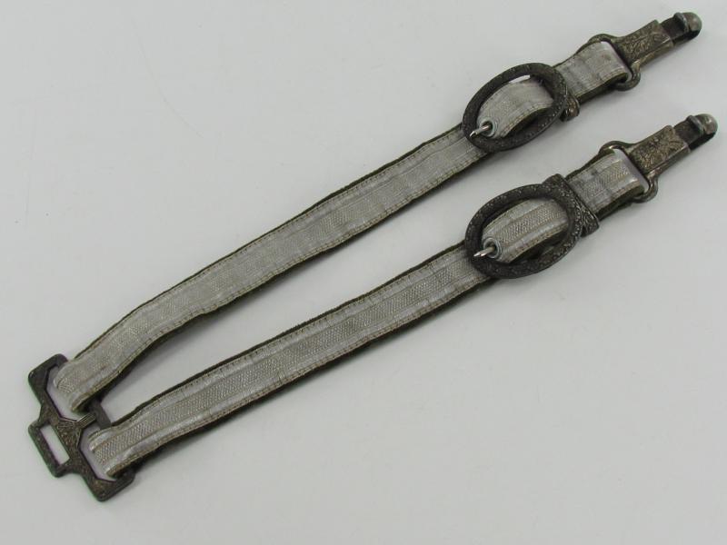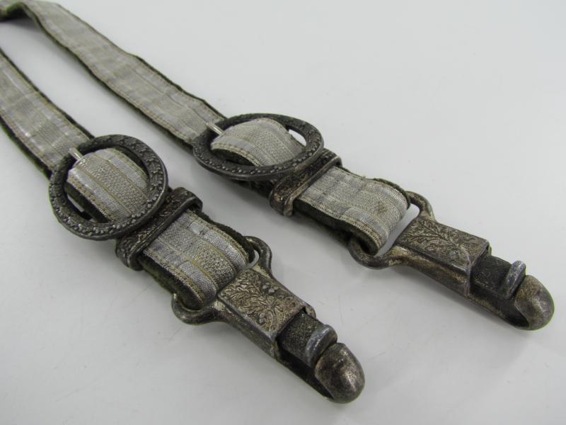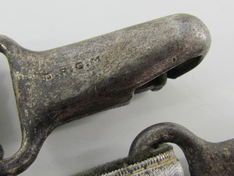 Wehrmacht Dagger Hangers Nice used lightweight (Aluminum) Wehrmacht Dagger hangers. DRGM markings . Great to complete a nice Wehrmacht dagger. In used but very good condition.