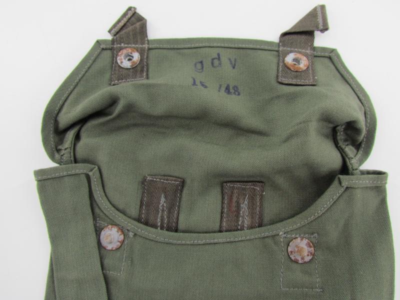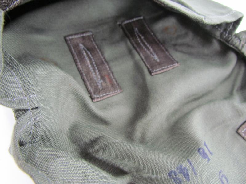 Wehrmacht Gasplane pouch. The pouch is in very good ( unissued )condition. No holes or damages. Both buttons present Maker marked gdv 43 Would be great to finish a gasmask display!
