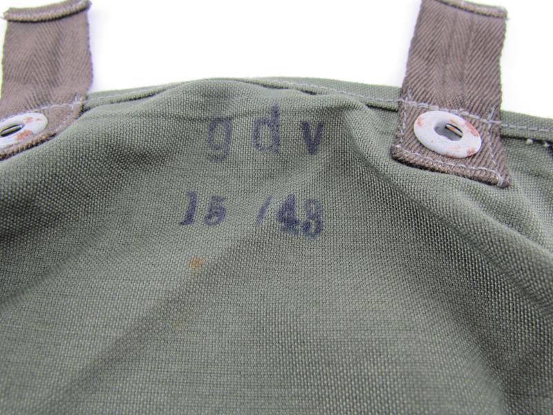Wehrmacht Gasplane pouch. The pouch is in very good ( unissued )condition. No holes or damages. Both buttons present Maker marked gdv 43 Would be great to finish a gasmask display!