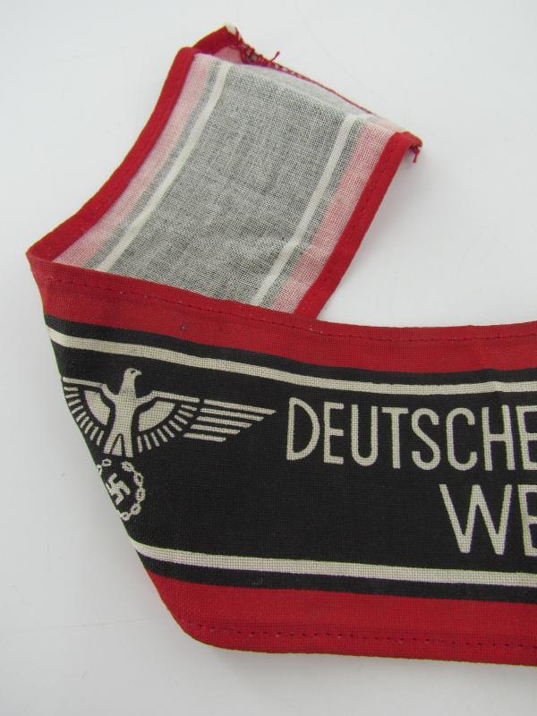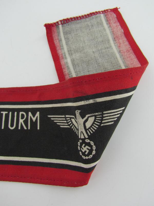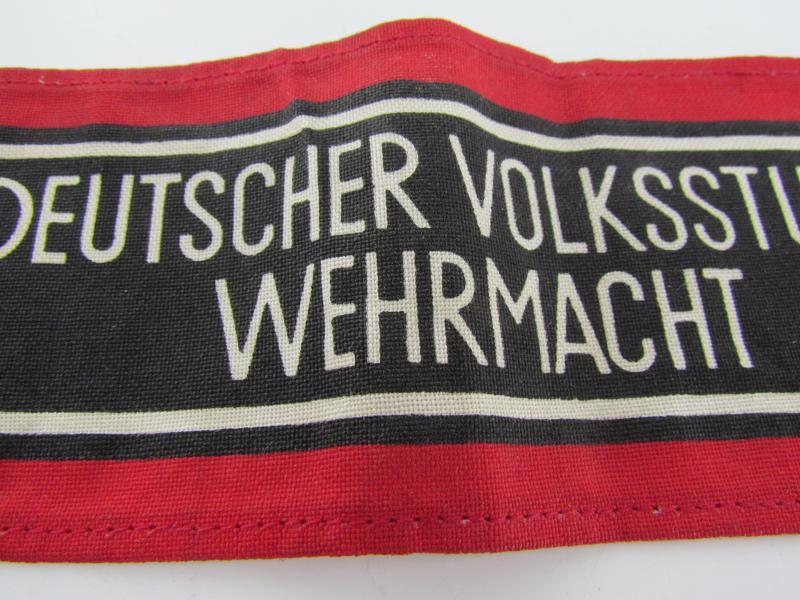 These armbands were issued to all those who were mobilized at the end of the war and usually worn civilian clothes or various uniforms of political organizations of the Third Reich