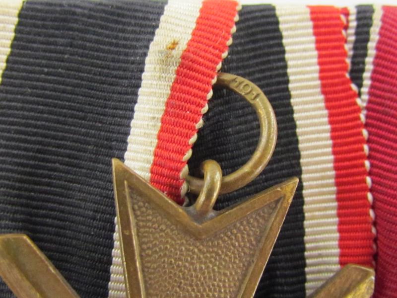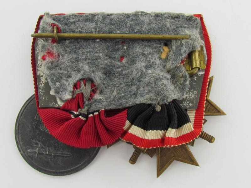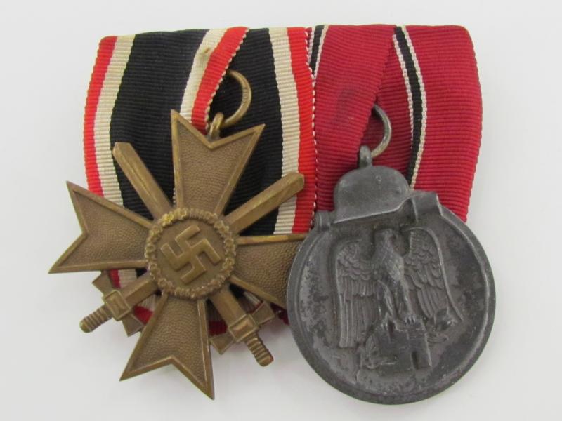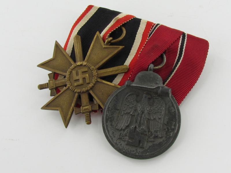 Two piece medal bar KVK2 + Ost medal war merit cross with swords second class ( Marked 101 ) and Winterschlacht im Osten 1941-42 Medal