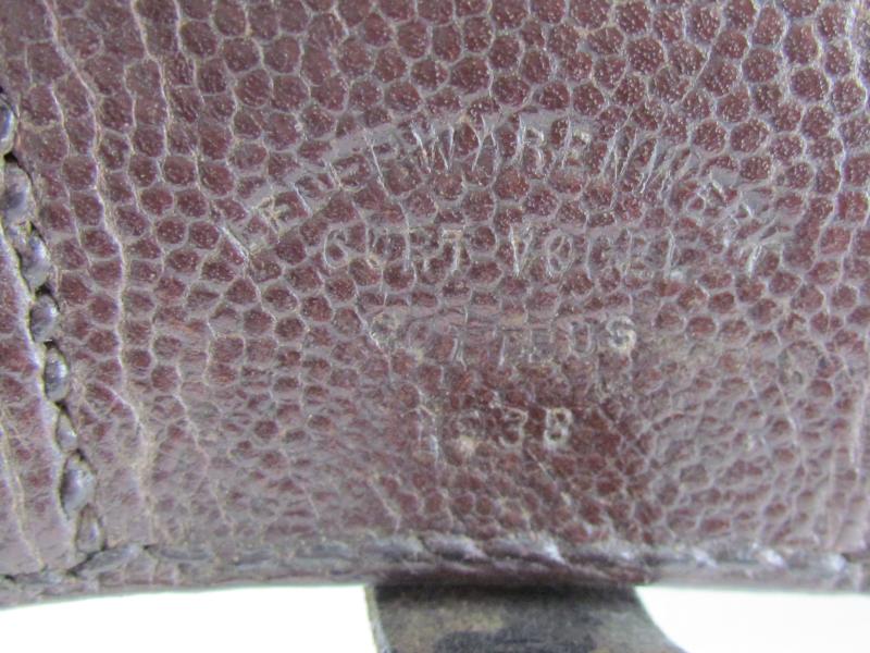 The pouch is nicely maker marked by Lederwarenfabrik Vogel Cottbus and dated 1938. The pouch is nicely 'L.B.A.' (Luftwaffe Bekleidungs Amt) marked as well.