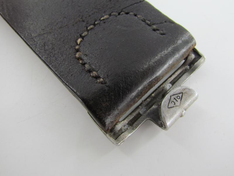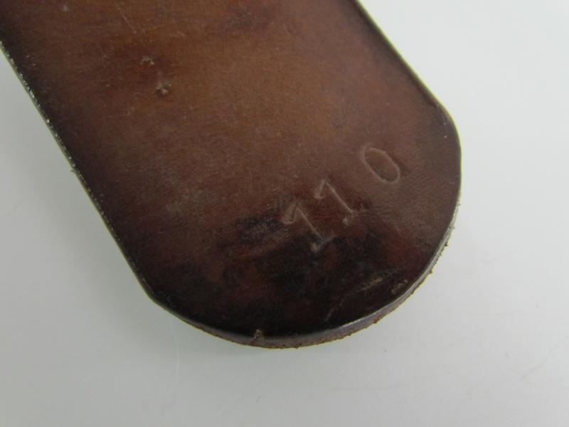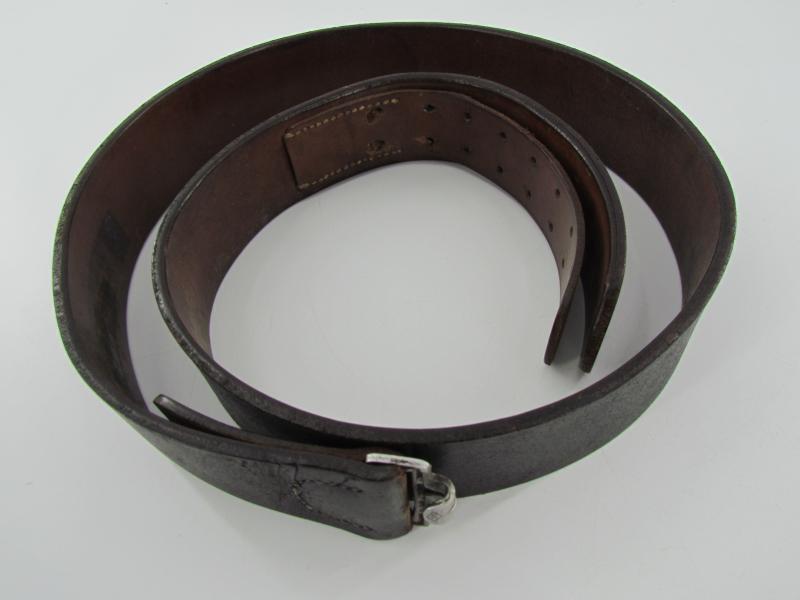 A nice standard issue leather equipment belt in used condition. The belt is 111,5 cm long No further markings visible.