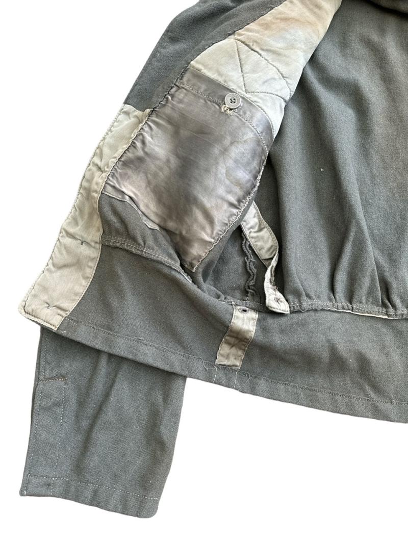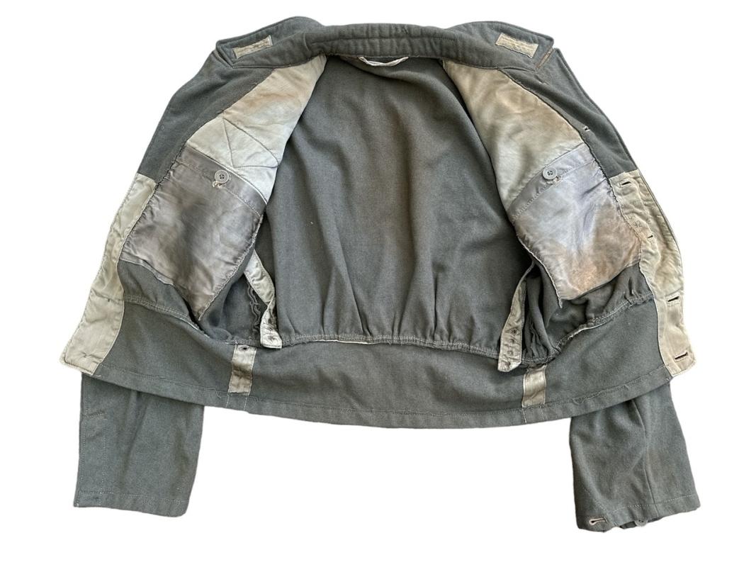 It has all its originally sewn insignia and buttons and has some nicely worn Shoulder boards for an NCO Oberfeldwebel of a Medical unit.