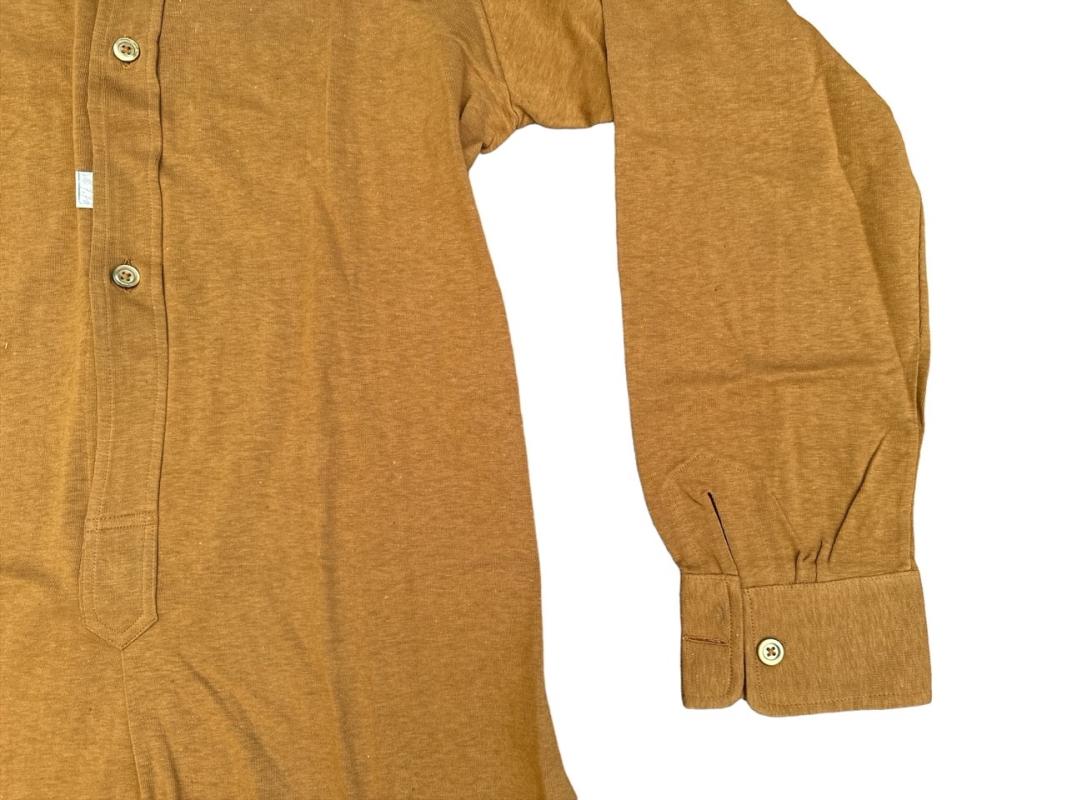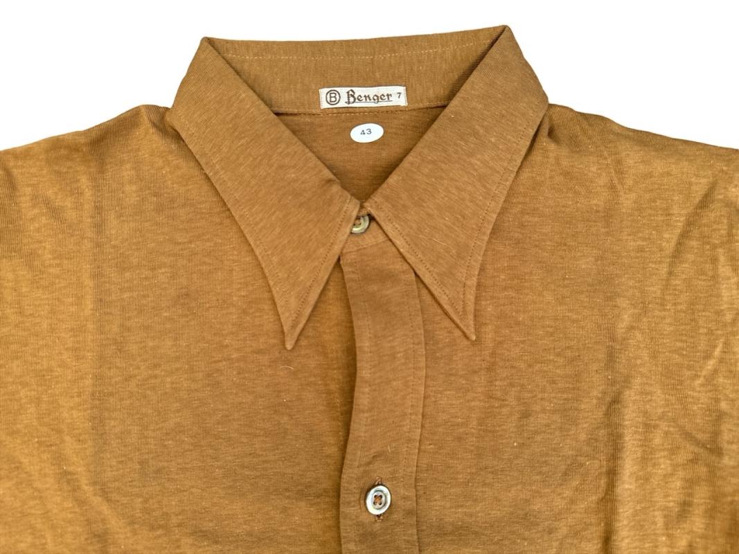Unissued NSDAP brown shirt in excellent condition. Original attached buttons and tag. "Benger" tag (maker) attached to the neck. Paper seller's tag attached to the front side.