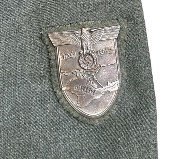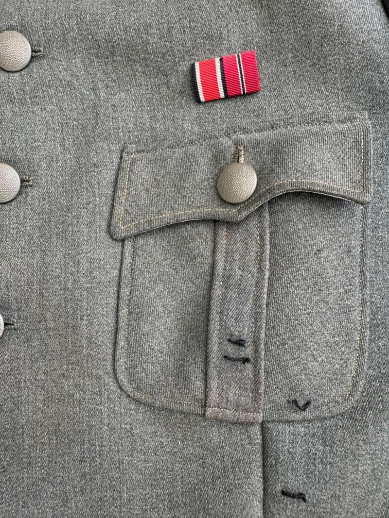 The Tunic has many award loops on the left ánd right breast pocket. The right breast pocket indicates it was once adorned with a DKIG or Deutsches Kreuz in Gold.