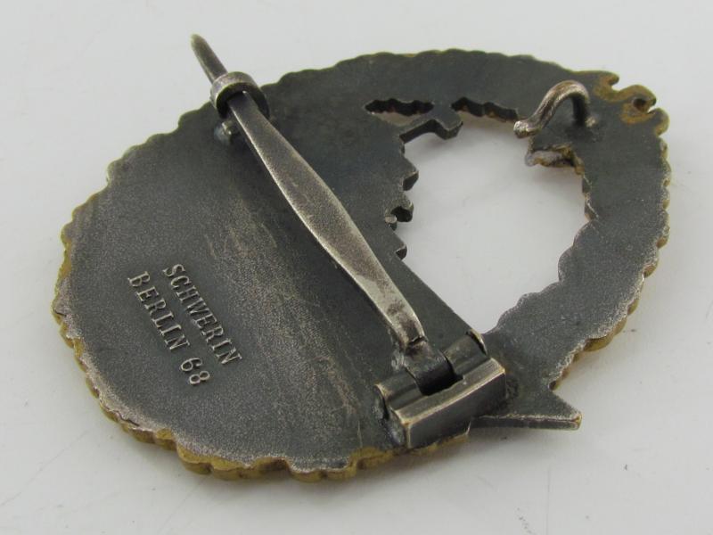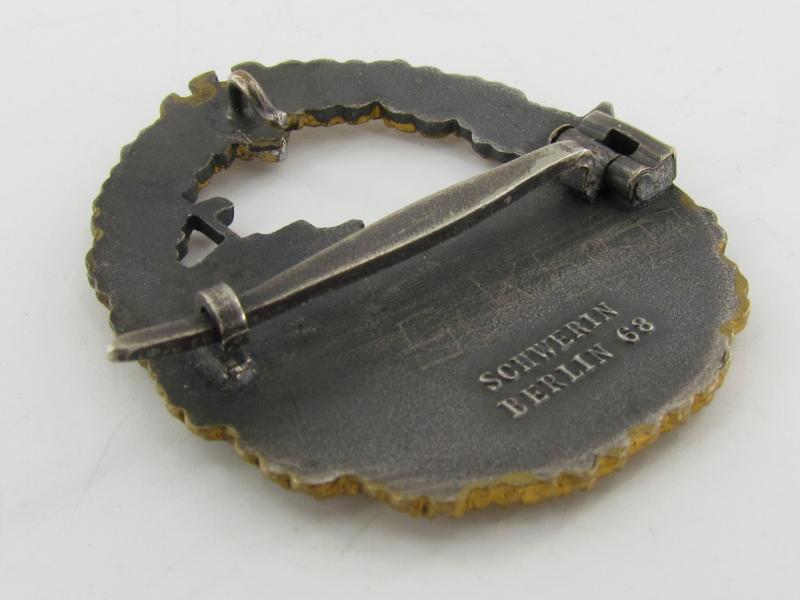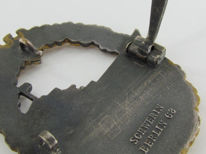The badge is nicely maker marked with 'Schwerin, Berlin 68'. Stunning original badge in used and worn condition!