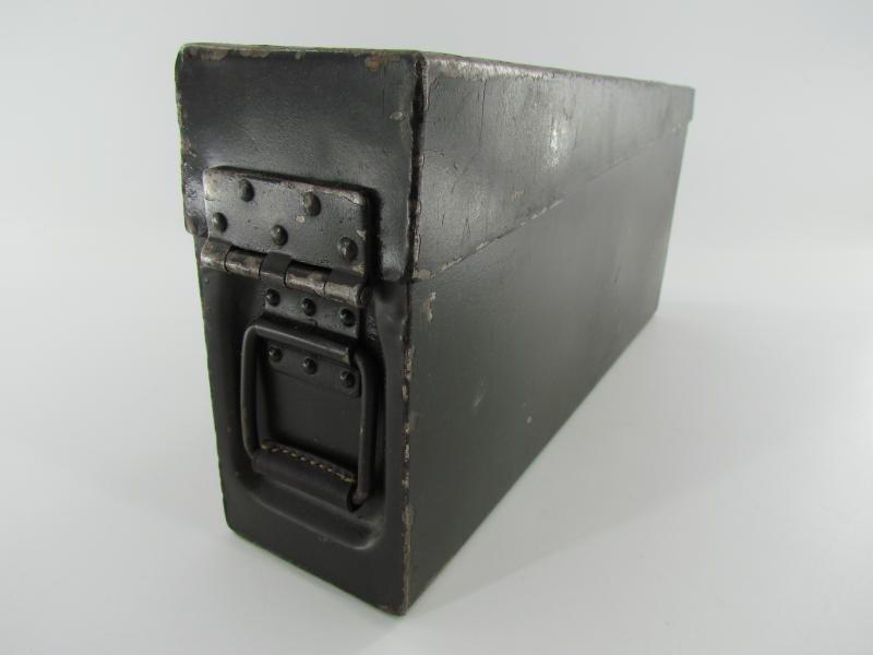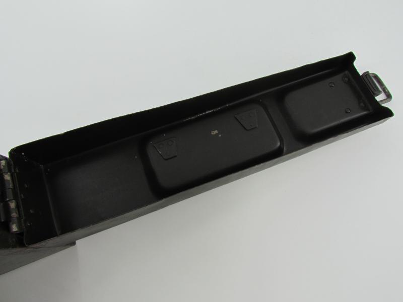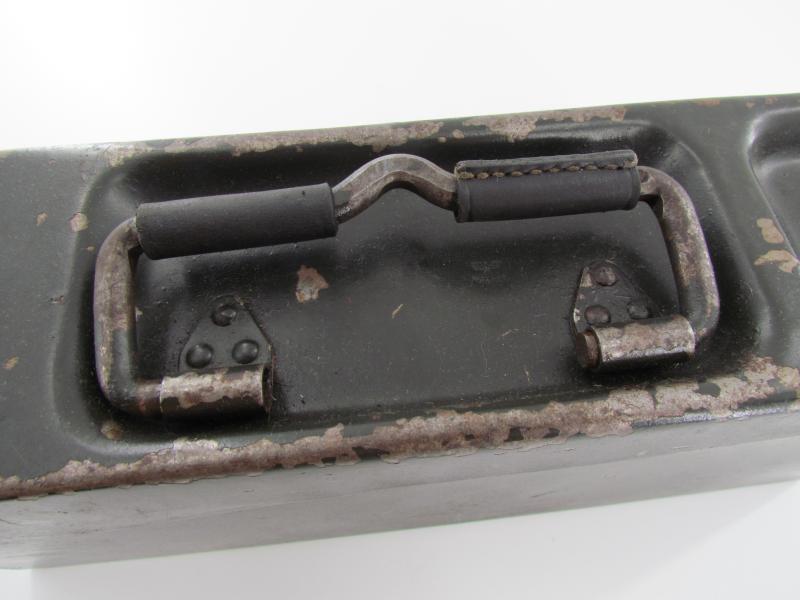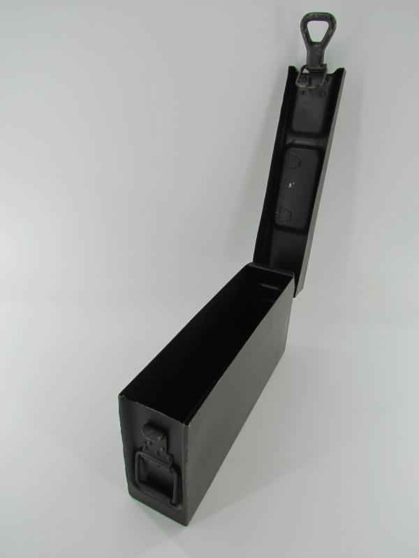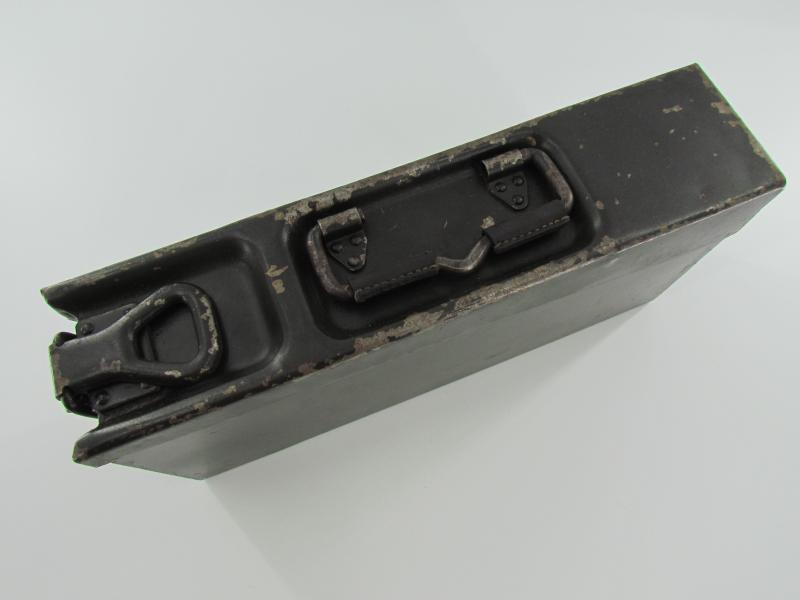 Steel MG34 u. MG42 ammunition box in very good condition. The ammunition box retains up to 95% of its original factory finish. WaA marked Hard to find in this condition!