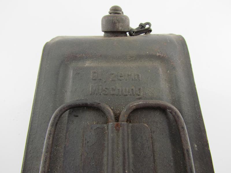 The container manufactured from stamped and formed steel retains over 95% of its original factory paint. No further markings found A very hard to find MG gunner item!