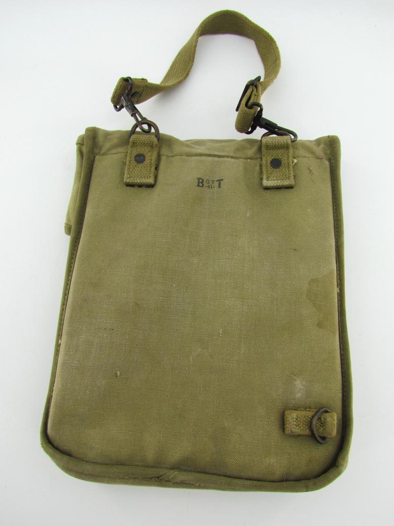 In a very good condition a US WW2 M-1938 Dispatch Canvas Case. The officer mapcase comes with the plastic military map insert and has the shoulder carrying strap. Nicely maker marked on the reverse side.