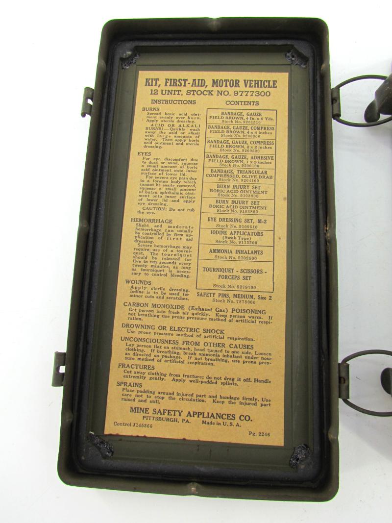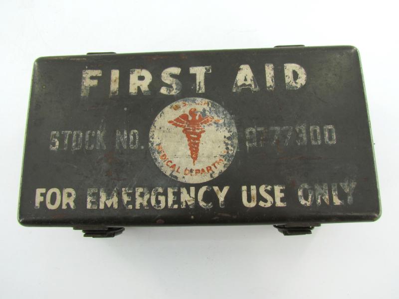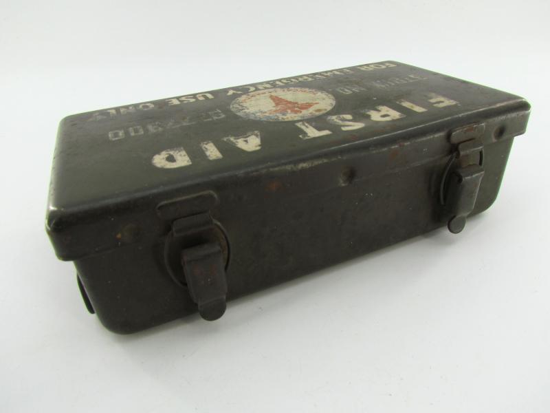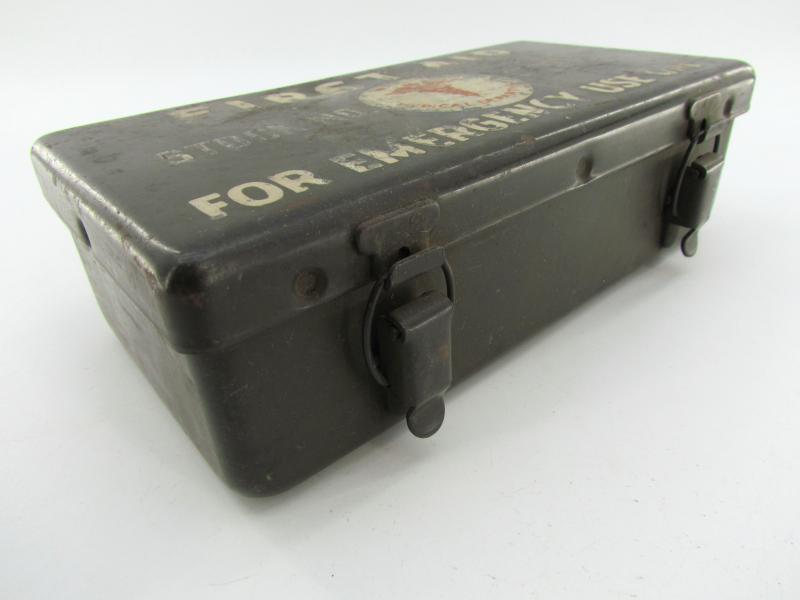 Very nice metal made US WW2 vehicle emergency medical box “First Aid, For Emergency Only”