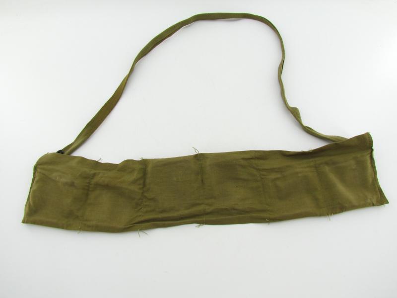 The bandoleer could hold 6 clips with 8 rounds of Ball M2 ammunition for the Garand M1 Rifle. no markings visible anymore