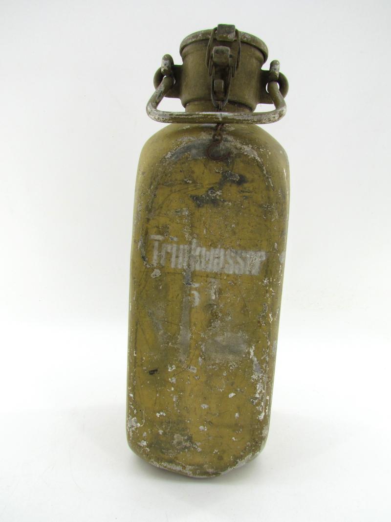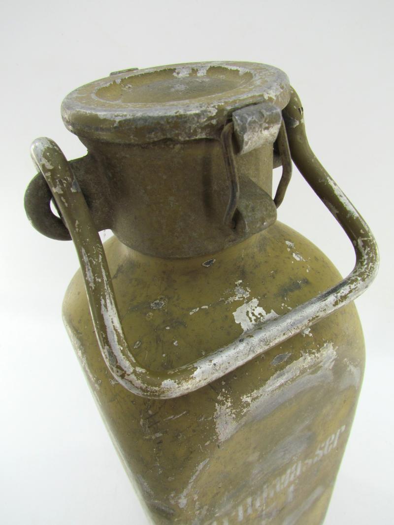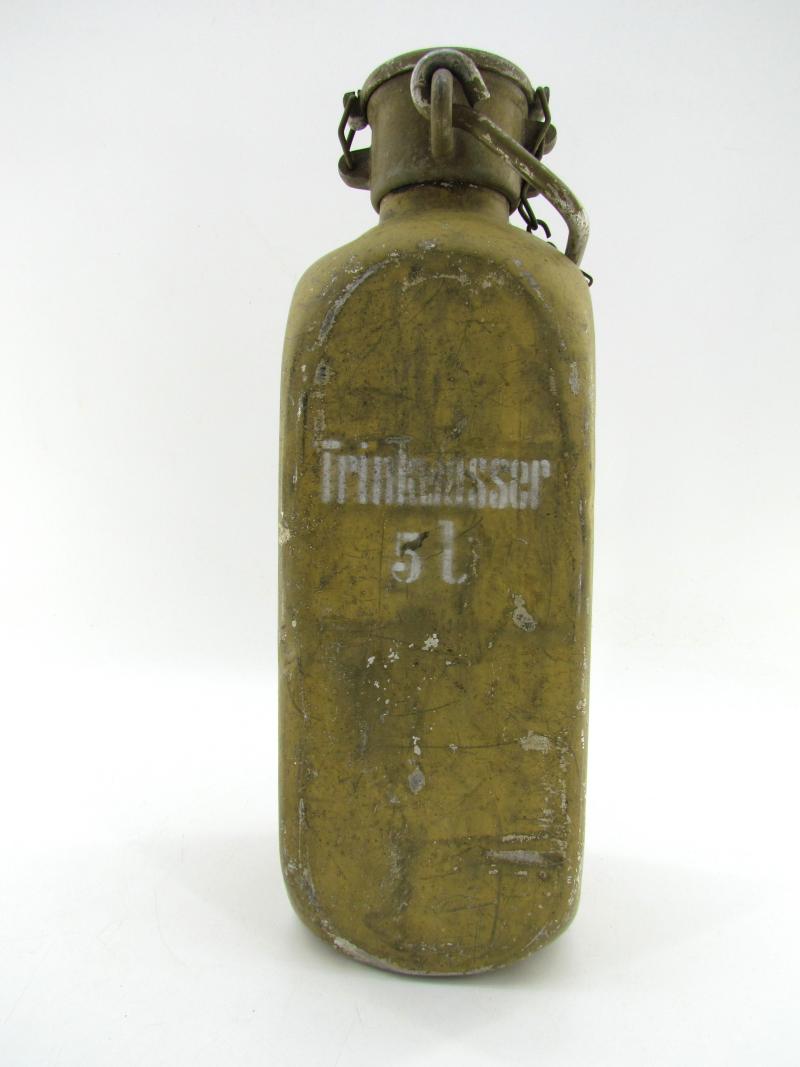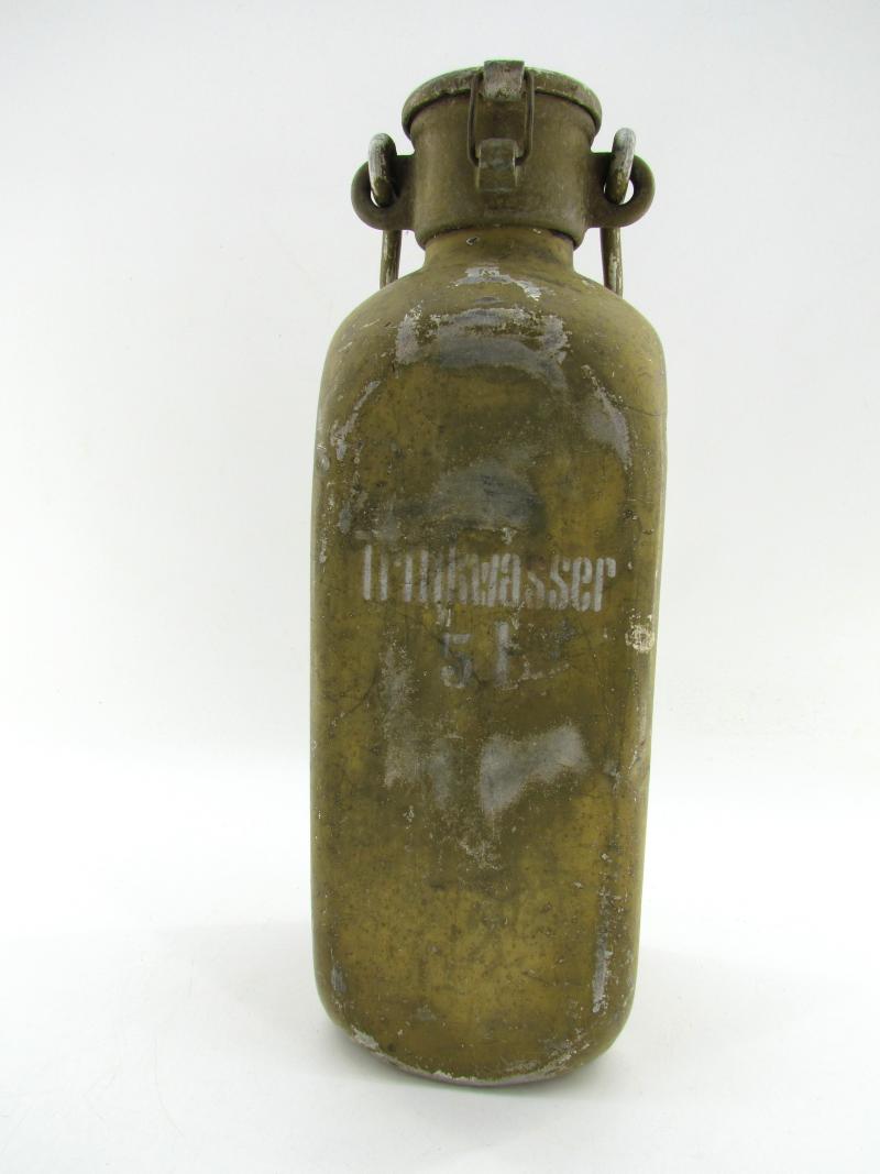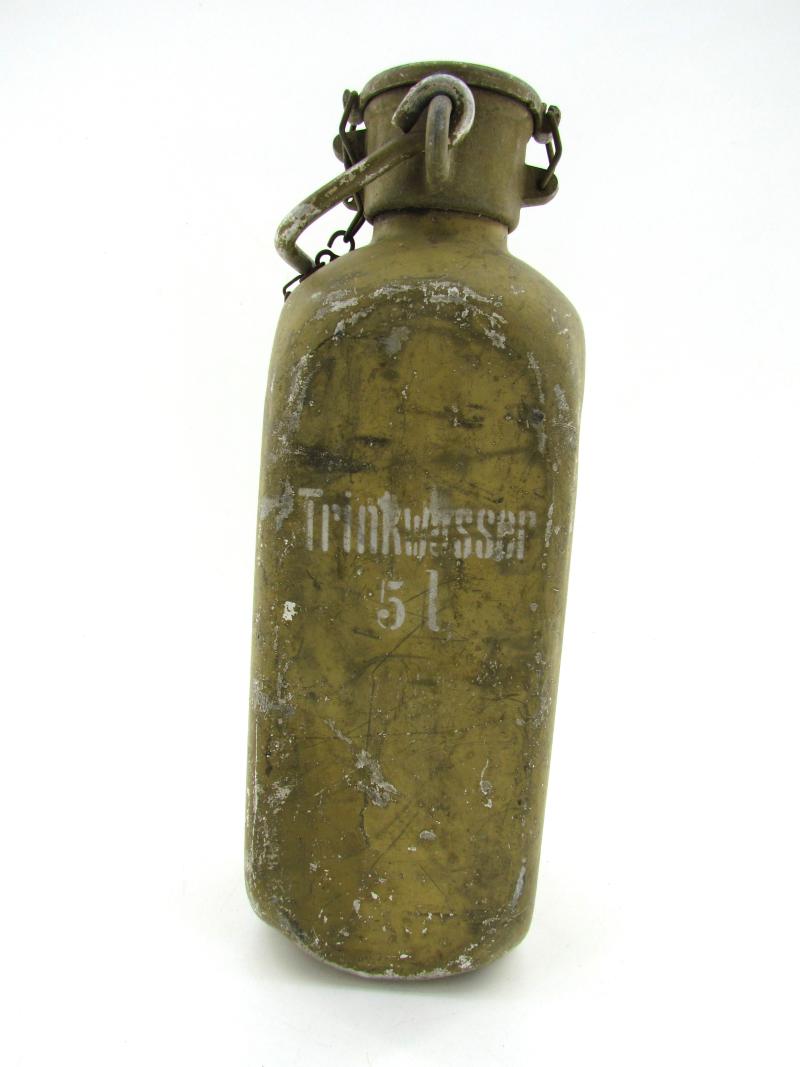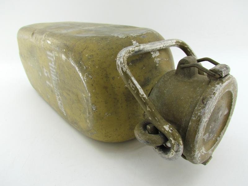 5 liter Trinkwasser water carrier in used condition The canister is marked and produced by Heinrich Ritter, Esslingen. A lost of the original paint is still remaining