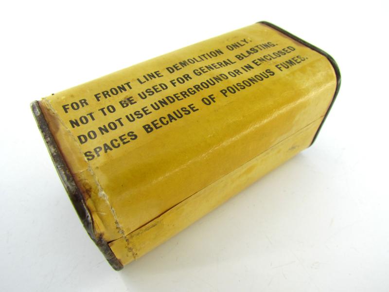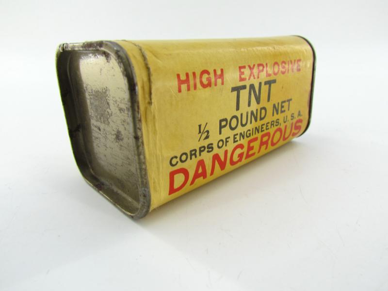 In a very good condition a US WW2 Empty TNT Explosive Package. The package could hold 0,5 pounds of TNT. The package is complete empty and very nice for display purposes!
