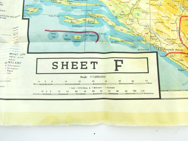 US WW2 Silk escape map 43E/43F Croatia, Montenegro, Hungary, Slovakia, Italy, Switzerland, Germany