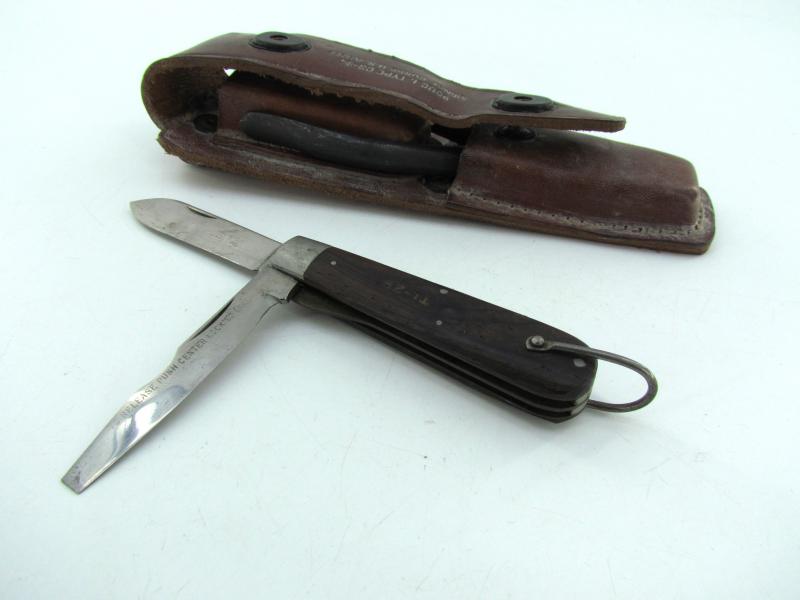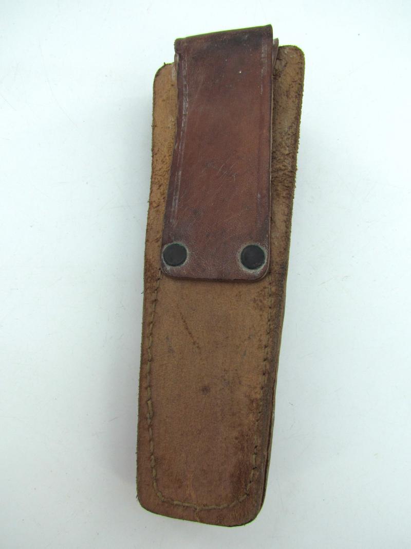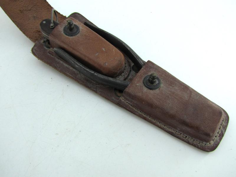 The brown leather pouch comes in a good functional condition without damage and has inside the original pocket knife made by Camillus. New York