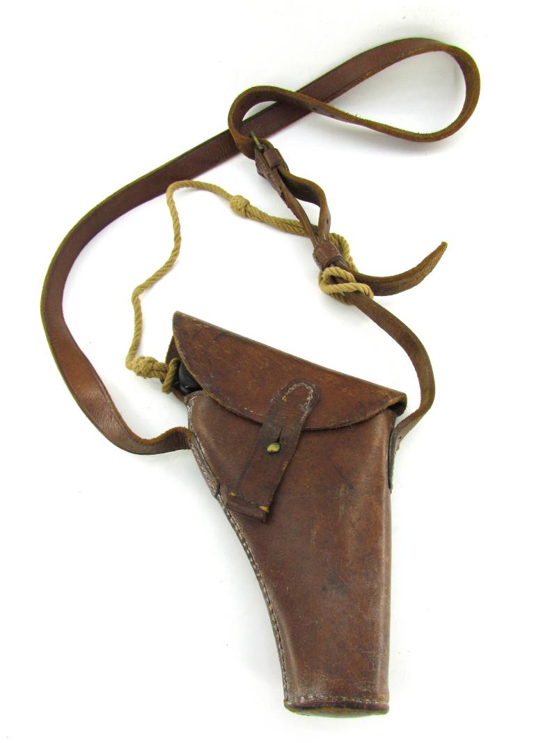The leather holster comes with the original attached carrying strap and is nicely maker marked and 1943 dated.