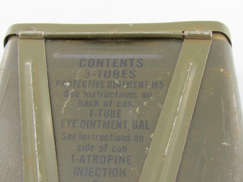 In a very good condition a US WW2 M5 Protective Ointment case . The case comes with content. ( but has suffered somewhat over the years )
