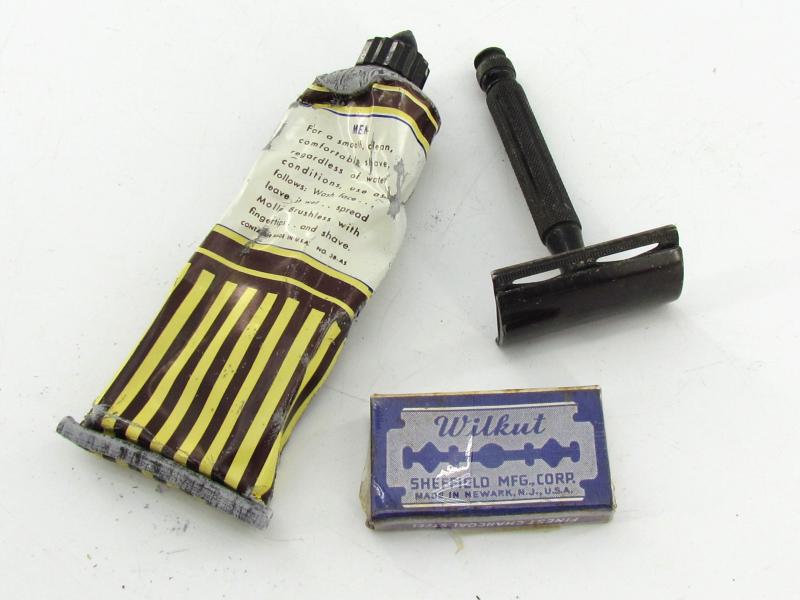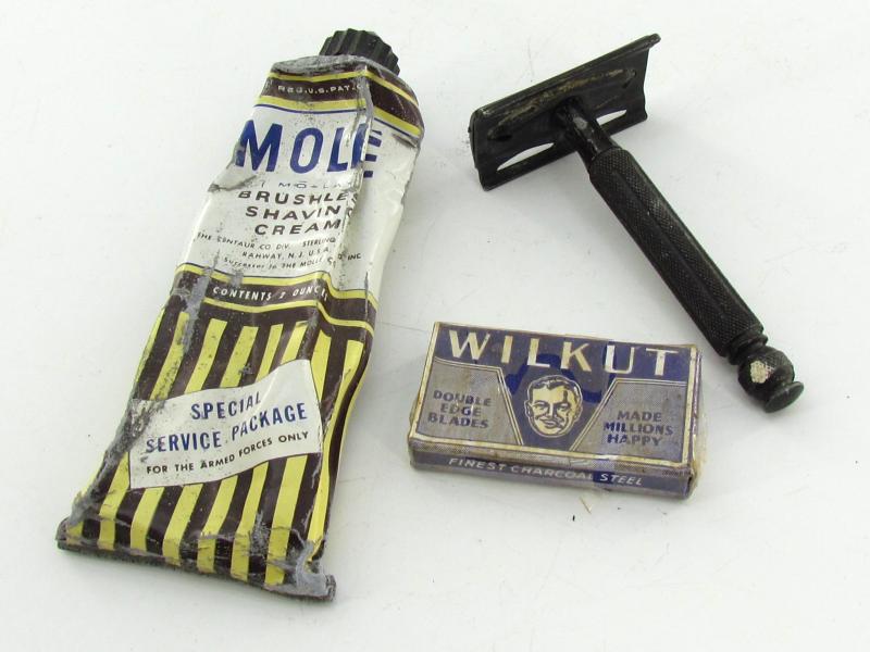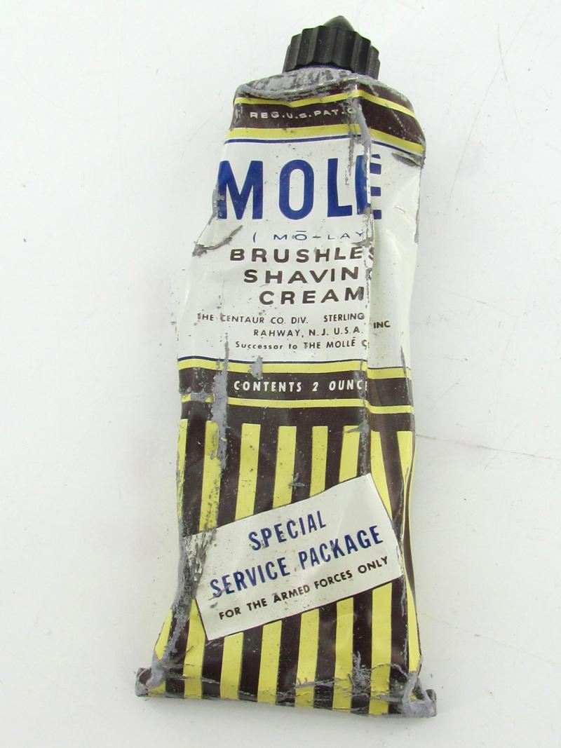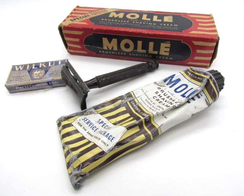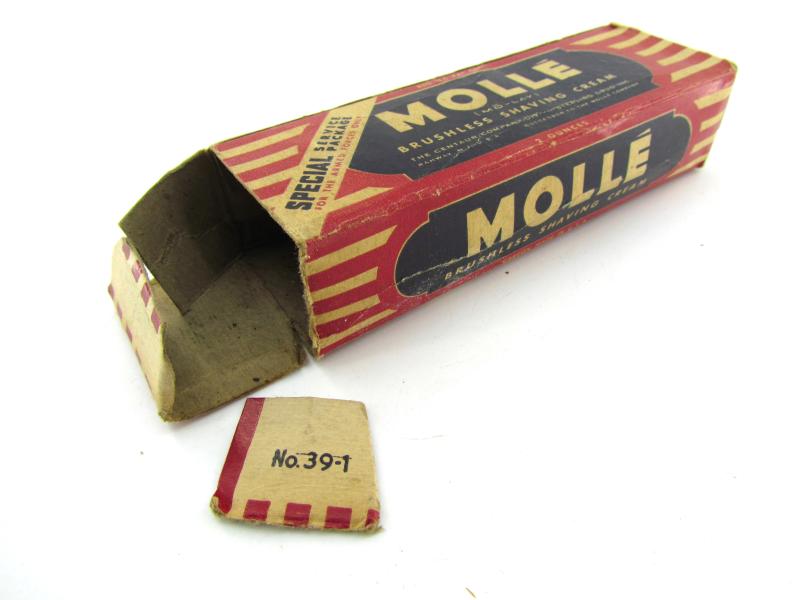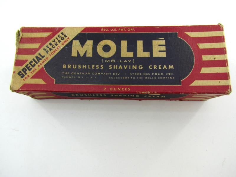 US WW2 Molle Shaving Cream Original carton packaging with original content. Made for the armed forces. Also included is a razor and a package of razor blades