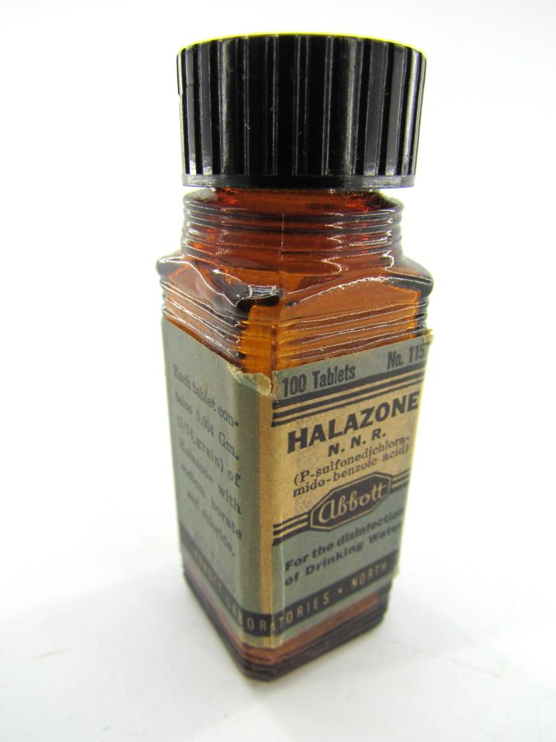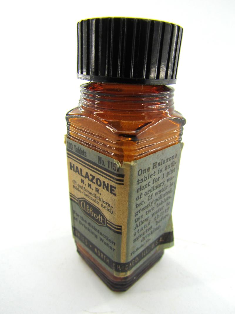 US WW2 Water Purification Tablets The glas bottle is nicely paper tagged and in very good condition
