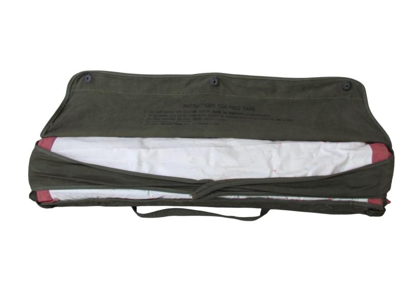 Used but in nice condition US WW2 dropzone marking panel in its original connected carrying bag. Marked “AP 3050 Panel” with orange and pink panels inside! Great for display!