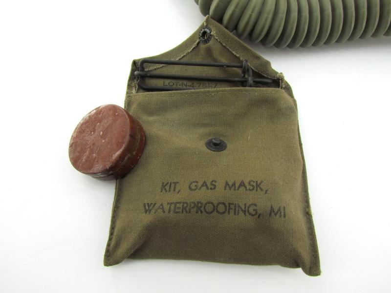 gasmask, hose and filter and also with some accessoires. They come with a correct type carrying bag, marked with 'US' and 'Army Lightweight Service Mask'.
