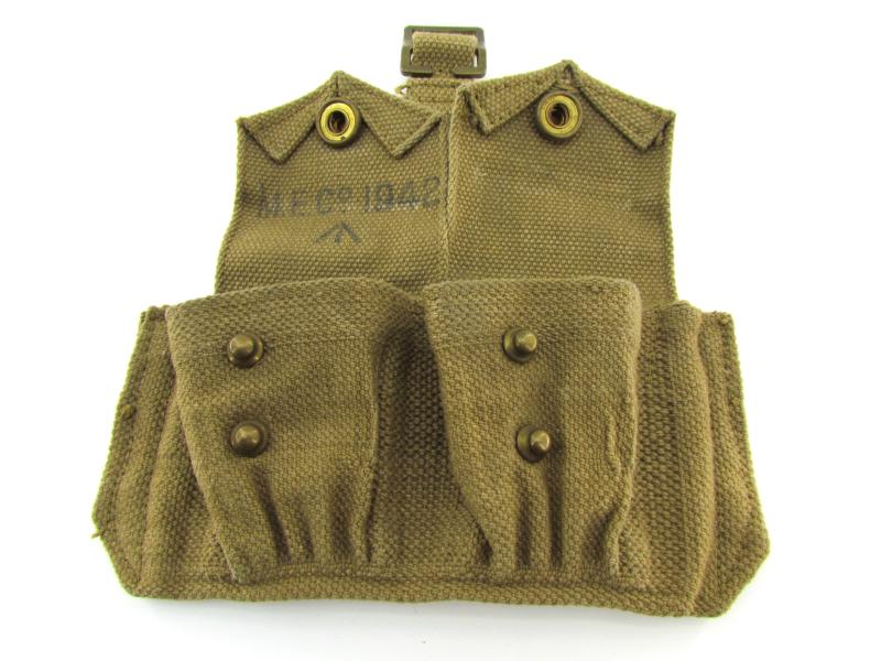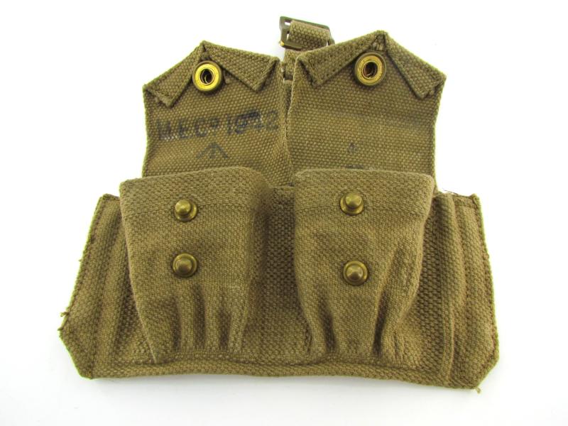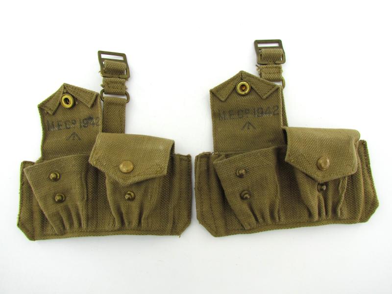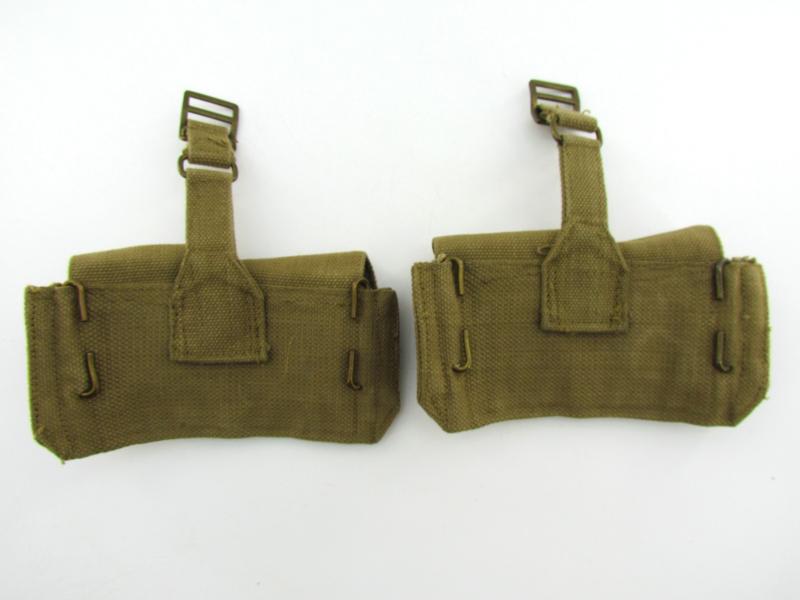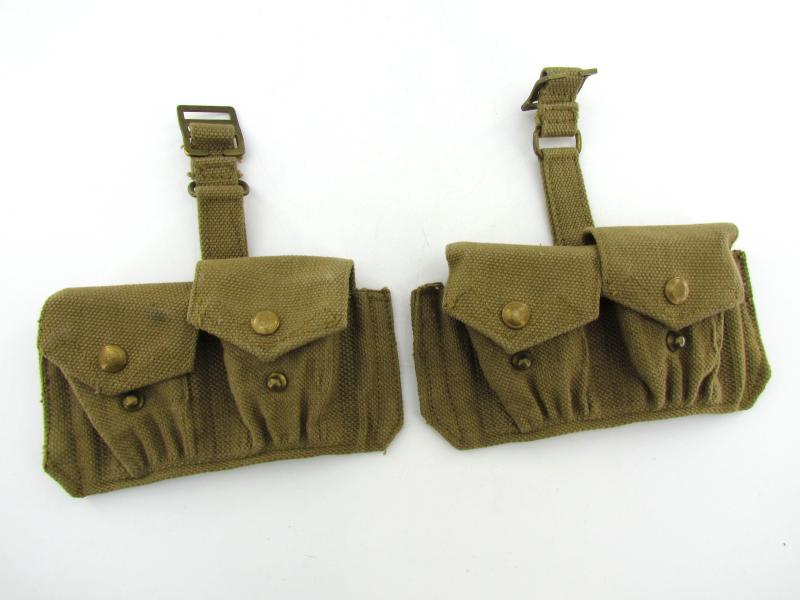 In a very nice used condition a British WW2 .303 Ammo Pouch set The pouches come in their original blanco and are maker marked and 1942 dated on each pouch.