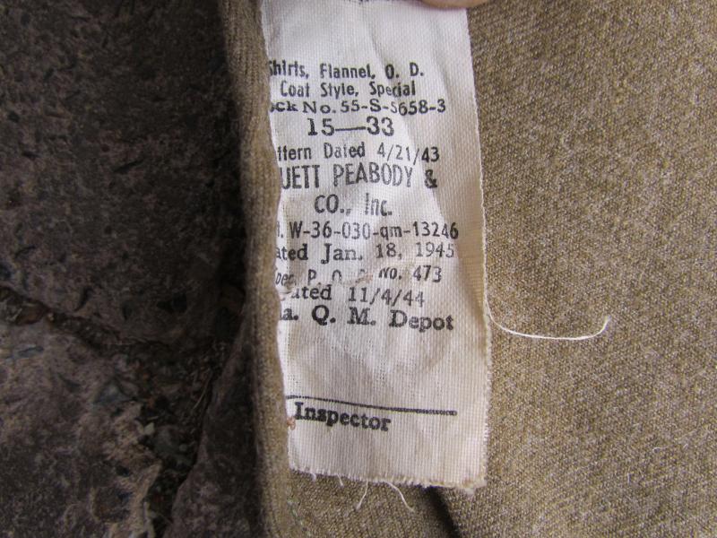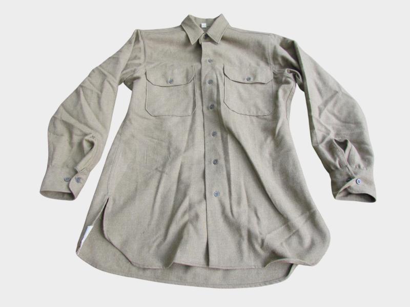 In a very good condition a US WW2 Wool Shirt for Enlisted Men. The shirt comes in a good mannequin size 15-33 and is complete with the orginal oil label inside! Dated 11-04-44