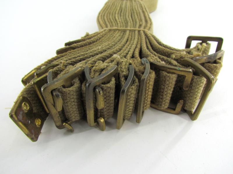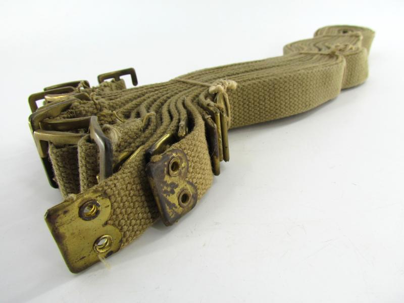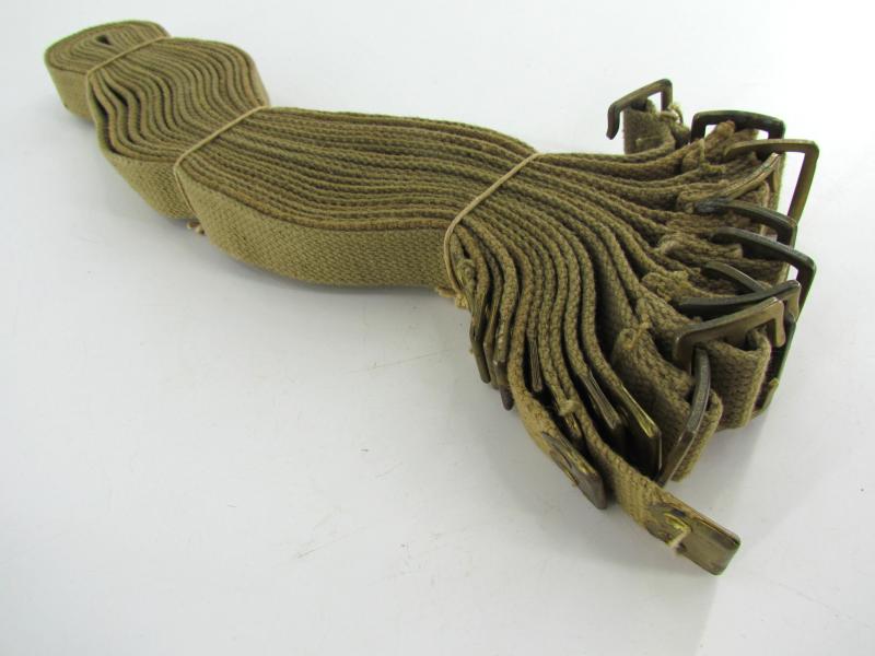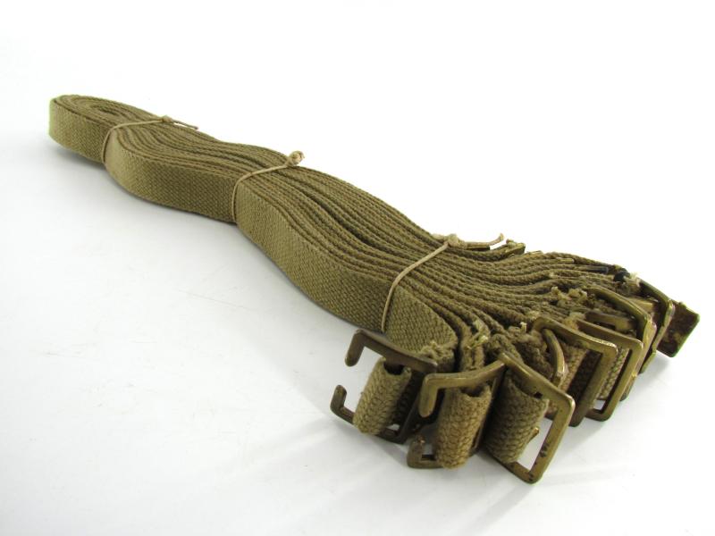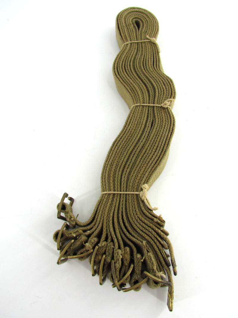 In unissued condition this bundle of British webbing utility straps. The bundle compromises 10 identical untility straps. Maker marked and dated 1944