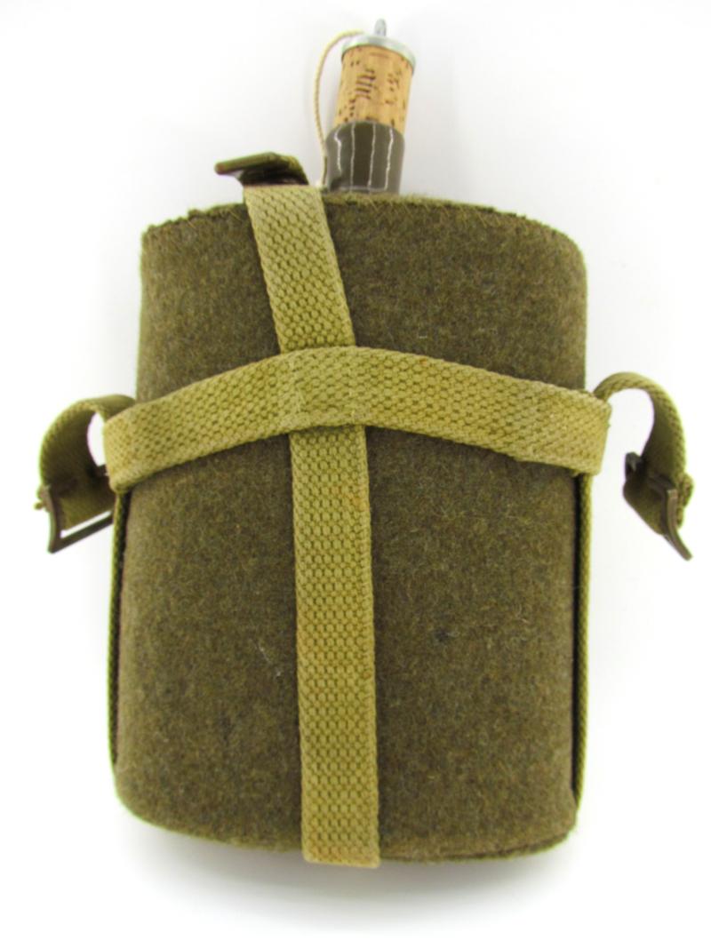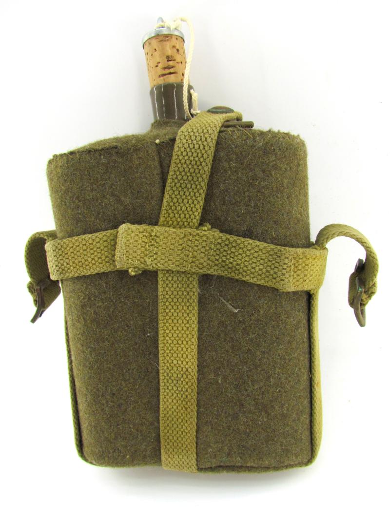 British WW2 Canteen Nice used British WW2 canteen with early type open carrying frame. Great to complete British field gear! In very good condition.