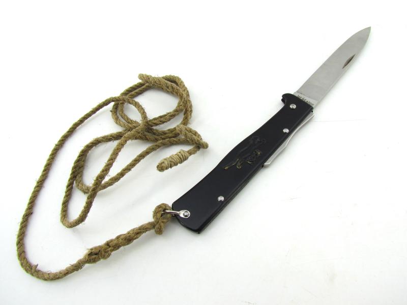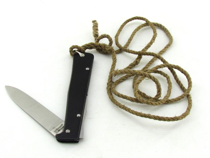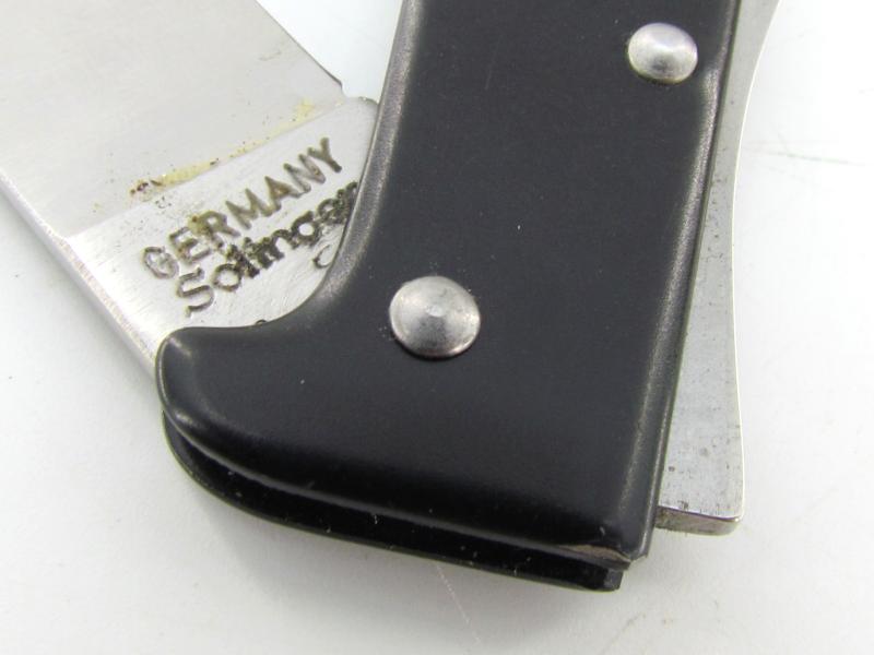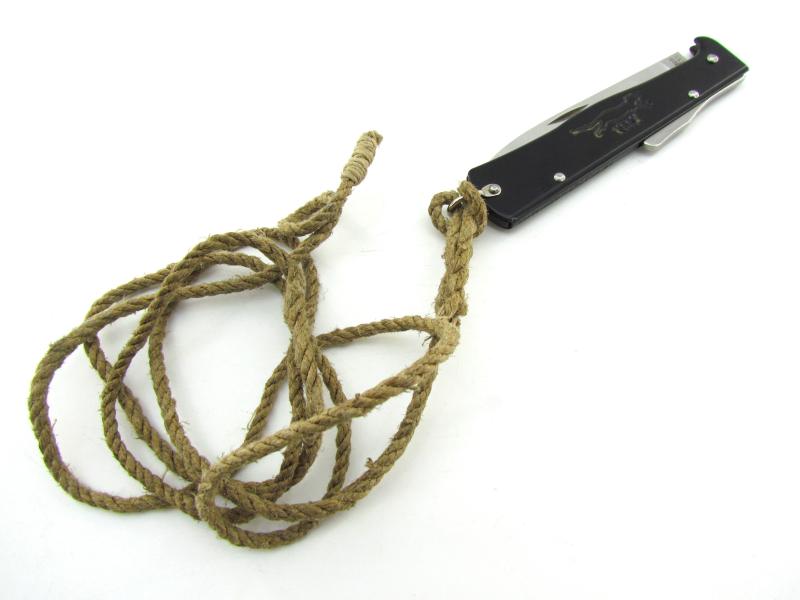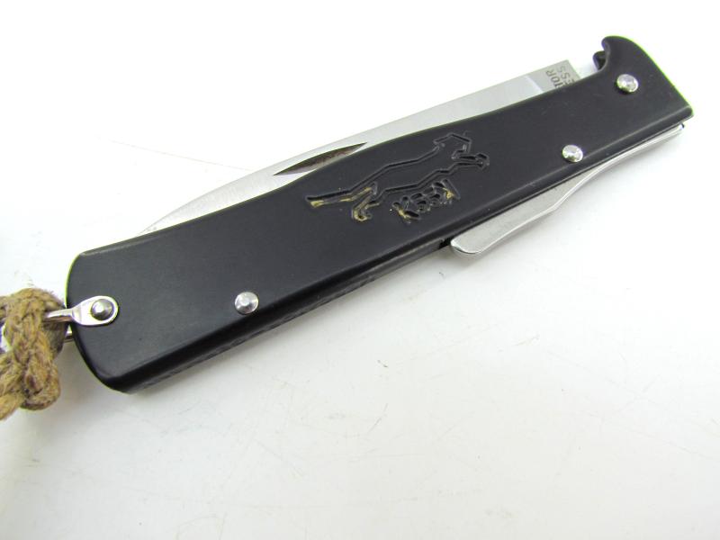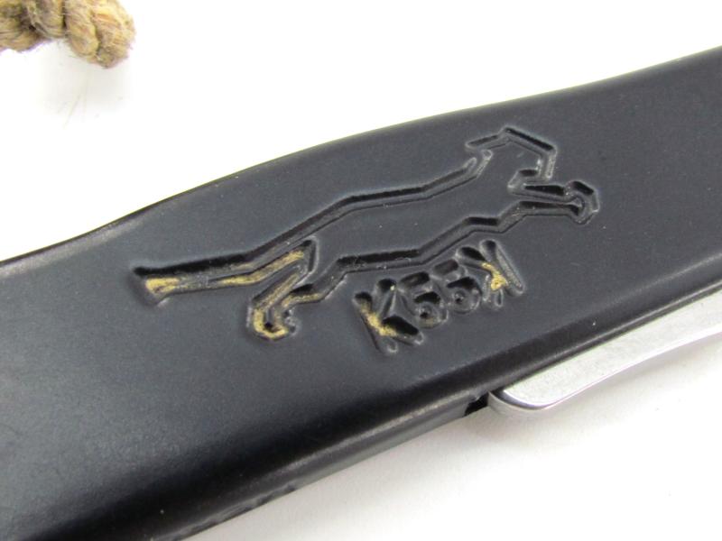 The designation "K55K" with the inversed second K is a code for the original producer's main office in Solingen and the knife model designation. The correct code deciphering according to the website of the current manufacturer would be: "K" for "Kaufmann" (the name of the original producer), "55" for "Hochstraße 55" (the address of the original company residence in Solingen, Germany), and the inversed second "K" (for "Katze" which translates to "cat" - the knife's main emblem)