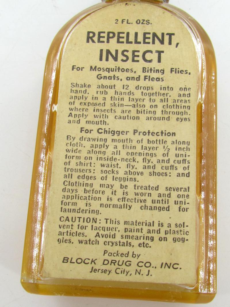 original US WWII Glass Bottle of Insect Repellent this was part of a M1 Jungle First Medical Aid Kit unissued condition