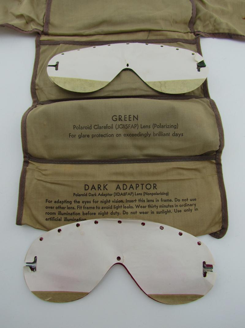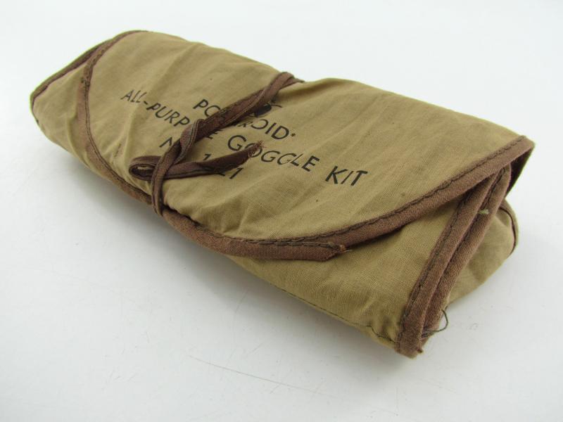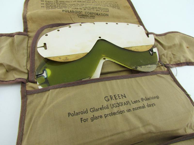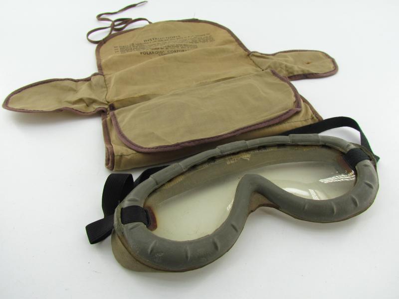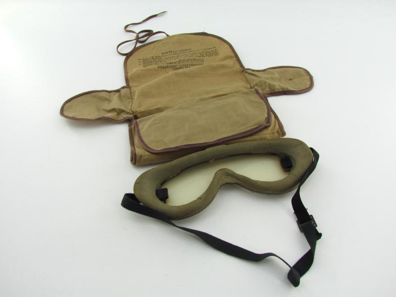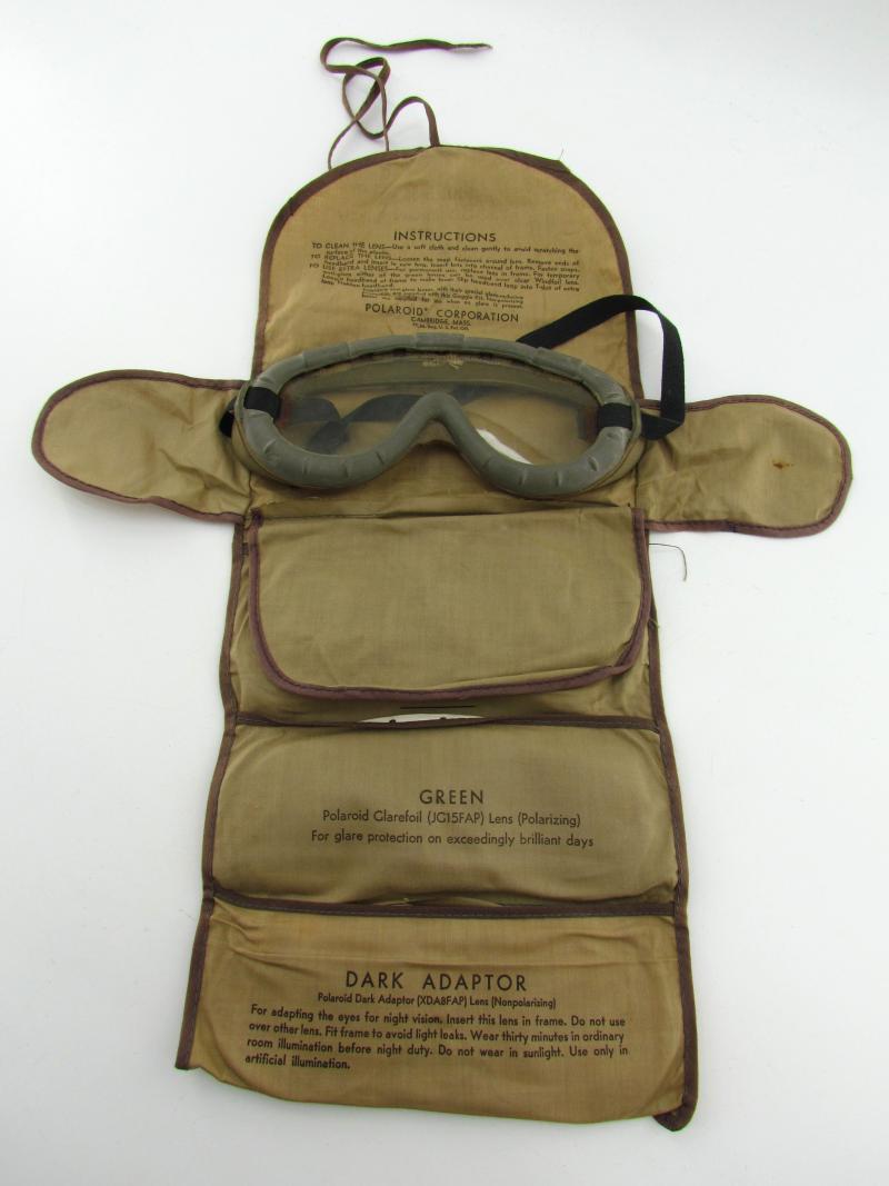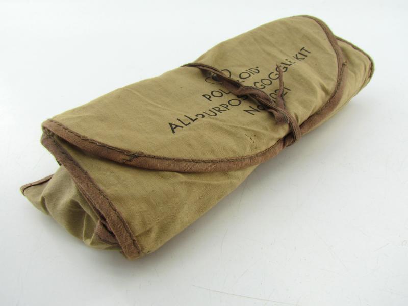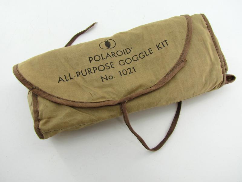 A pair of US army Polaroid all-purpose goggles, Type 1021. The canvas case holds various coloured spare shields. Nicely marked Polaroid Corporation in used but very good condition