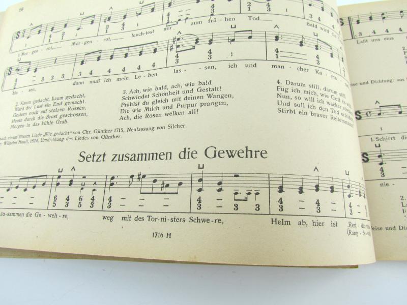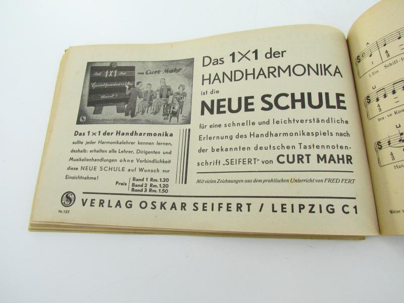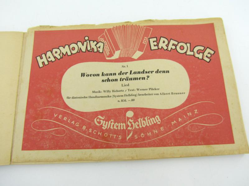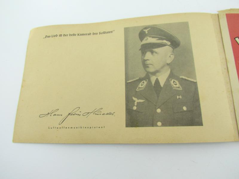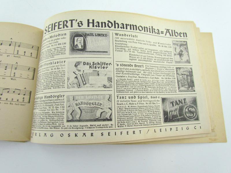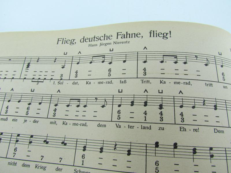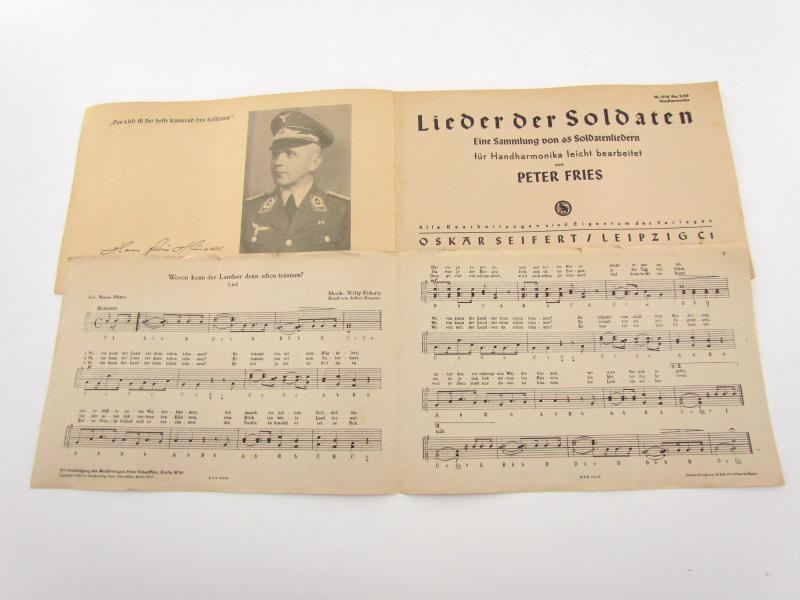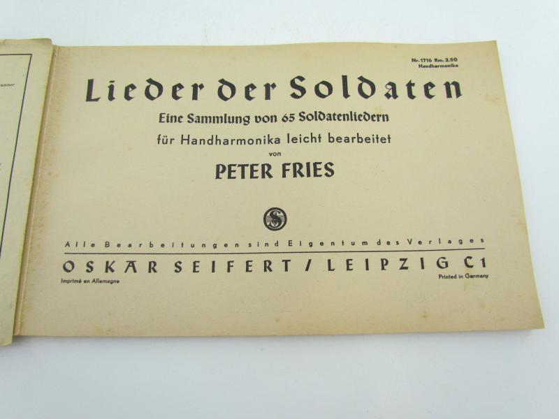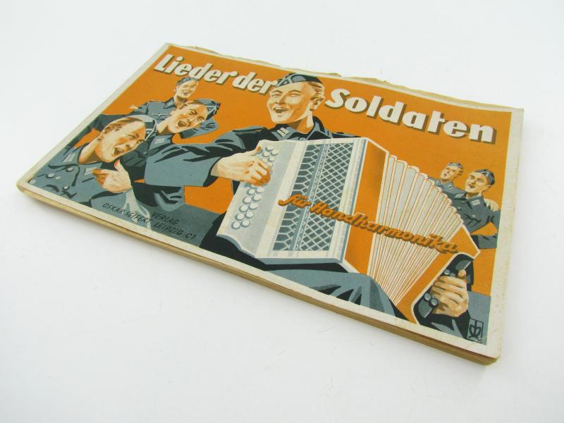 Songbook with sheet music for accordion. Lieder der Soldaten. About 26,5 x 17 cm 64 pages. Very good condition.