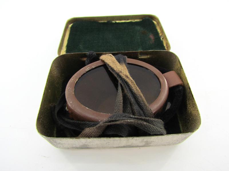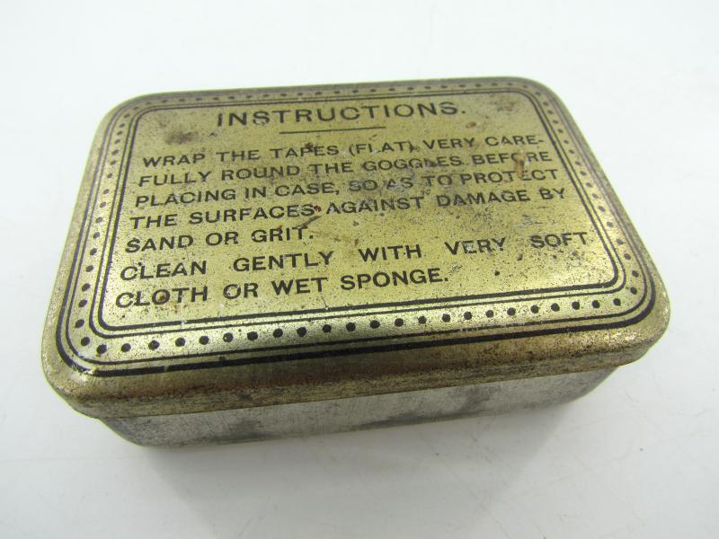 World War 2 British Dust Goggles in Tin Case. The goggles are complete with their original straps. The goggles are dated 1941. Nice pair of goggles in good condition!