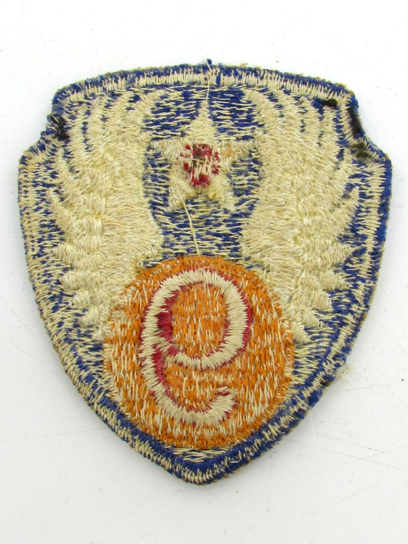 USAAF (United States American Air Force) 9th Air Force shoulder patch. The 9th AF participated in Egypt and Libya, the campaign in Tunisia, and the invasions of Sicily and Italy. The 9th transferred to England in October, 1943 and participated in Normandy invasion and the rest of the European continent until the VE-Day.