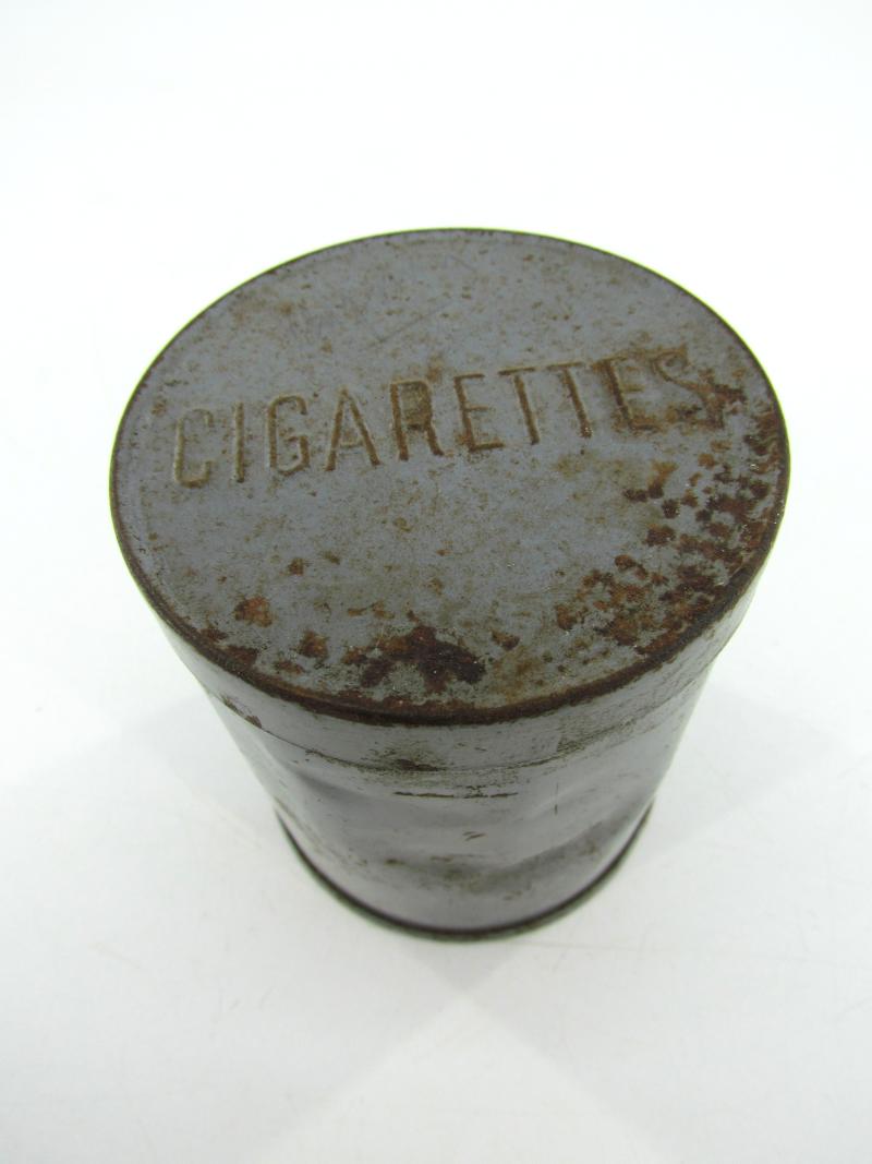 Nice used British WW2 Army cigarettes ration can Marked in the metal “Cigarettes” and in its original grey paint. In used but very good condition. Great for a personal items display!
