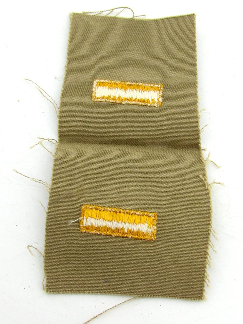 2x Original Unissued World War Two Overseas Service Bars on khaki twill - Each Bar Represents 6 Months Overseas Service.