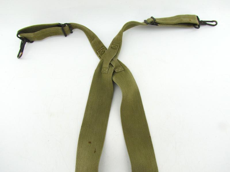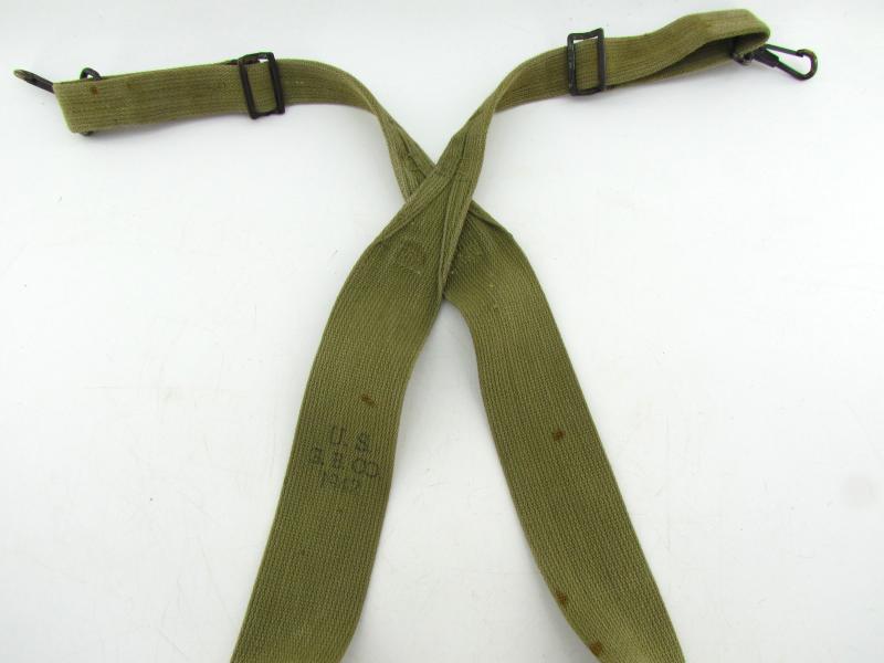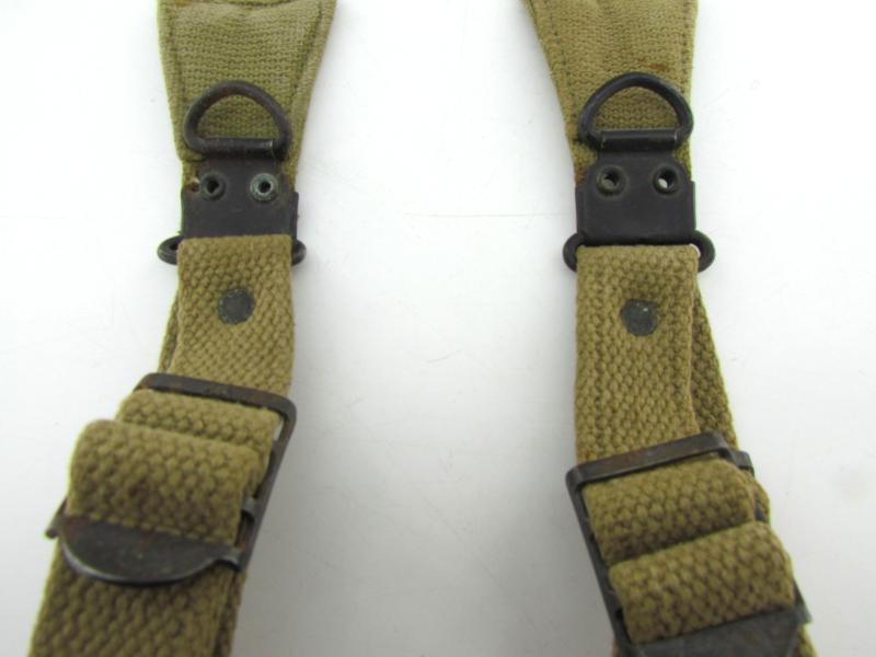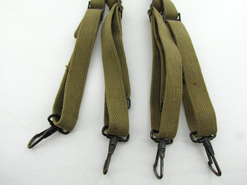 In a very good condition an US WW2 M-1936 pair of suspenders. The suspenders are maker marked and 1942 dated. A very nice set!